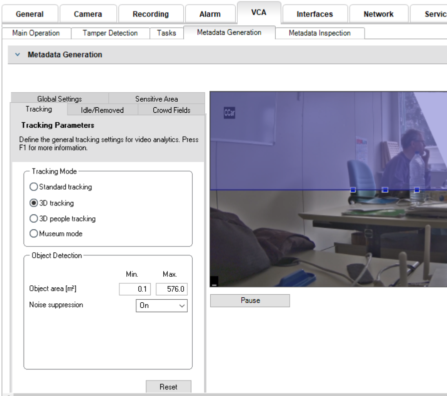 If the camera is calibrated, a proper indication is shown in the VCA -> Metadata Generation -> Global Settings tab.