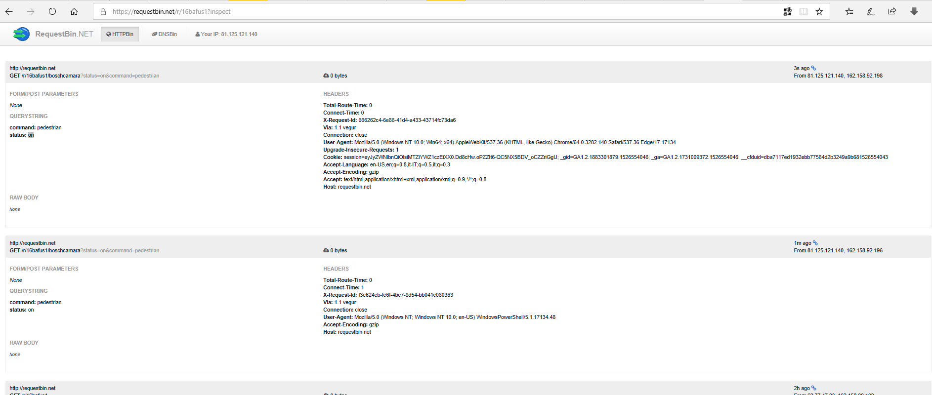 Verification that the HTTP GET is arrived to the temporary requestbin server