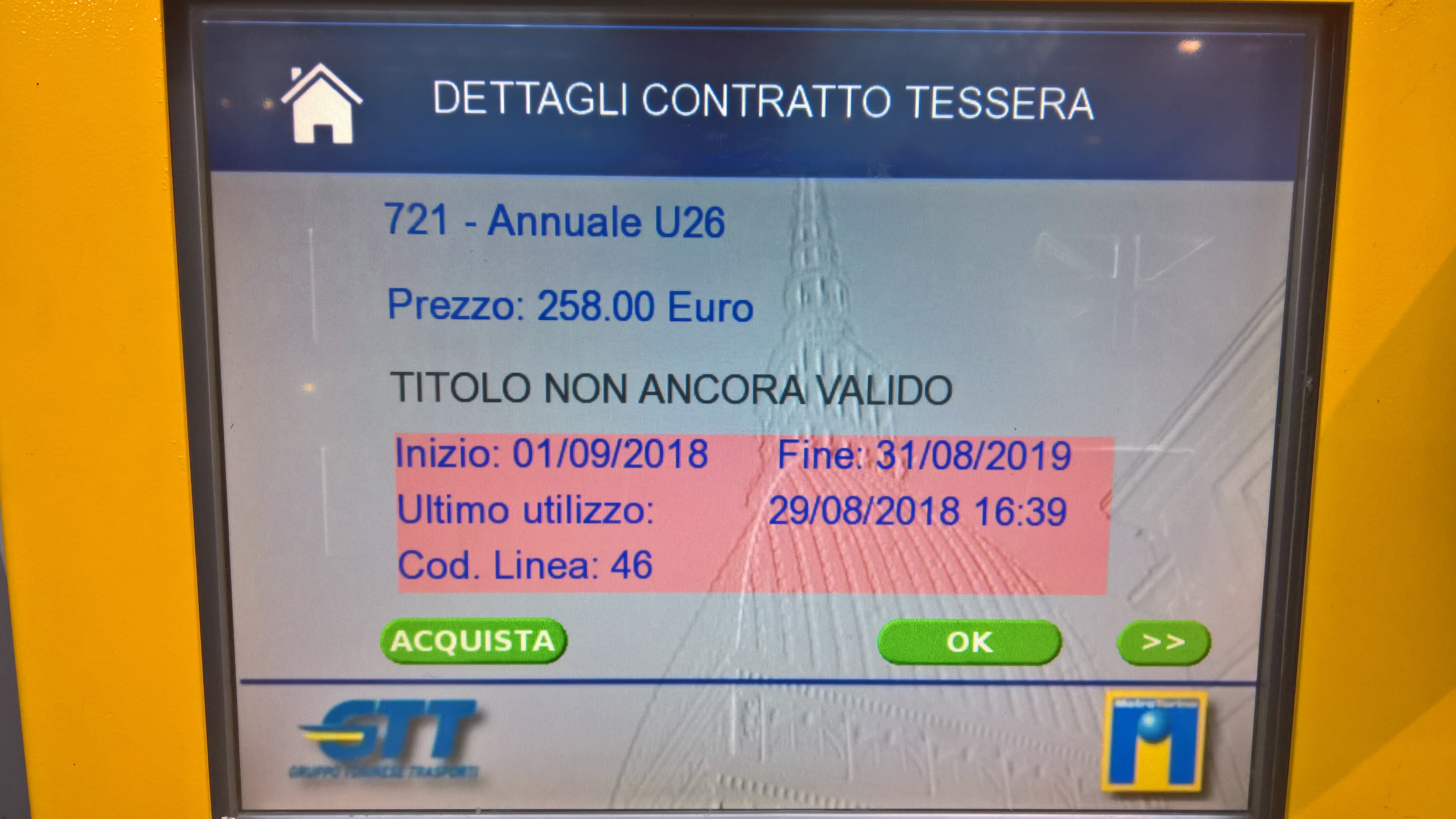 Direi che, per essere un sistema automatico rivolto al pubblico di qualsiasi età ed estrazione culturale, sia la procedura sia l’interfaccia che consente il rinnovo degli abbonamenti GTT sono inspiegabilmente complicate, non guidate e poco intuitive …