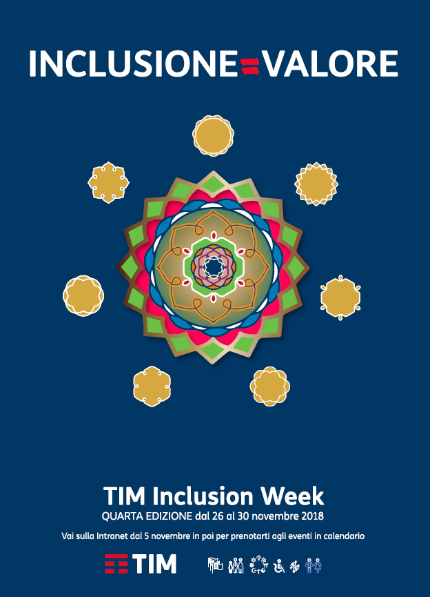 Negli ultimi anni, annualmente viene organizzata in TIM la “Inclusion Week”, con iniziative relative appunto all’inclusione proposte da dipendenti: spesso gli eventi sono relativi la disabilità, l’etnia, l’orientamento sessuale/identità di genere, il genere/leaders hip al femminile, l’aging/longevity, la religione, ma possono anche riguardare qualsiasi tema in cui, in generale, si evidenzi come Inclusione = Valore.