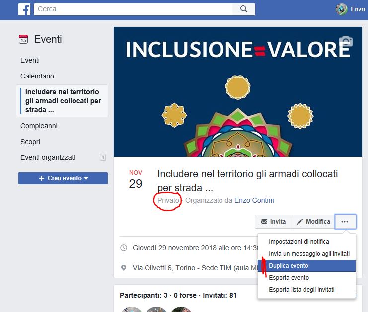 Ovviamente ora si avranno due eventi analoghi, uno privato ed uno pubblico … Quello privato si può comunque cancellare sempre che nessuno nel frattempo abbia già aderito: diversamente conviene mantenerlo comunuque!!