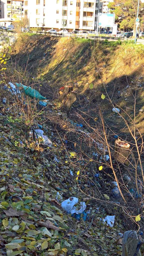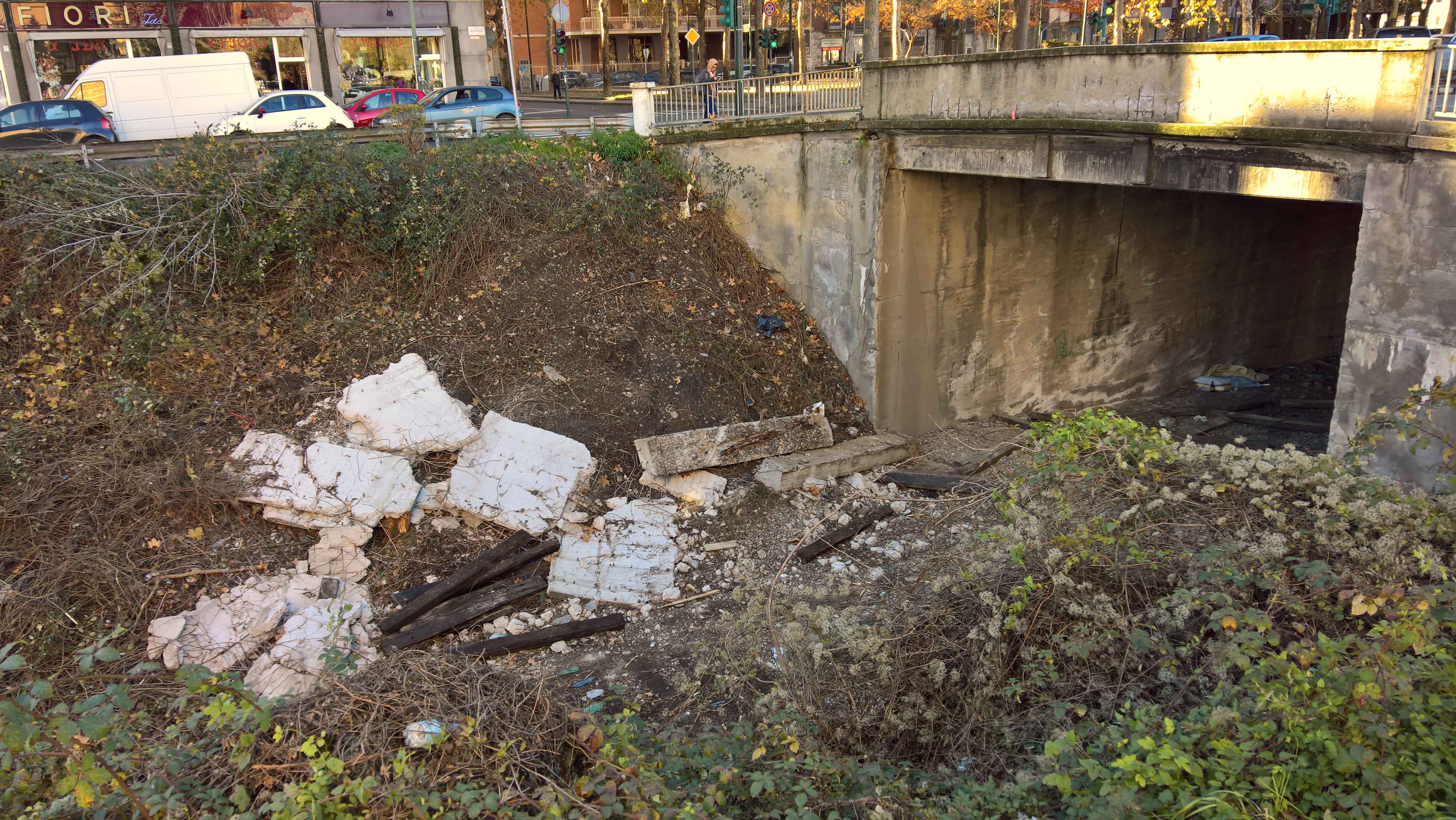 Si noti inoltre che buona parte dell’immondizia di notevoli dimensioni (e.g. gomme, boiler, armadi, infissi, tapparelle, mobiletti, materassi, enormi ruote per avvolgere cavi elettrici/ottici, vetri, bottiglie di vetro e di plastica, un acquario rotto, stampanti, passeggini, lavandini, water, poltrone, seggiole, bacinelle, ben tre biciclette in sharing distrutte ed un’altra rubata da cui sono stati prese alcune parti) si trova in prossimità del bordo del fossato oppure nel suo fondo, dove un tempo passavano i binari: quindi almeno quella si sarebbe potuta togliere agevolmente da tempo anche lasciando completamente intatta la vegetazione che invece è presente sulle sponde del fossato.