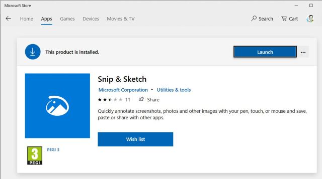 After you install the Snip & Sketch [IT: Cattura e note] app, if you like, as an alternative to run from the listed installed app, you can launch with the shortcut Windows logo key + Shift + S