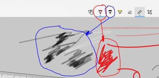 While with the ballpoint pen the stoke is predefined and you can only set the size and the color, with the pencil you can even mark the stroke more and more, re-writing it over: this allows you to better draw a painting, if you like. With the eraser you can then possibly delete each line.