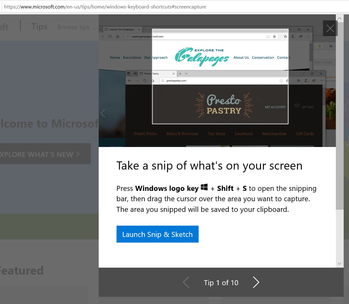 Another feature, that was available also in the Snipping Tool, is the ability to delay capture, so you can take a screenshot of some pop-up windows. Very often setting that delay can be replaced launching the app with its shortcut (Windows logo key + Shift + S) while the popup window is on. However, that second method does not work when Start/RightStart menu is on and you want to capture it too: in that case you have to open the tool first and set the delay capture feature before (i.e. New arrow, and select Capture after 3/10 seconds).