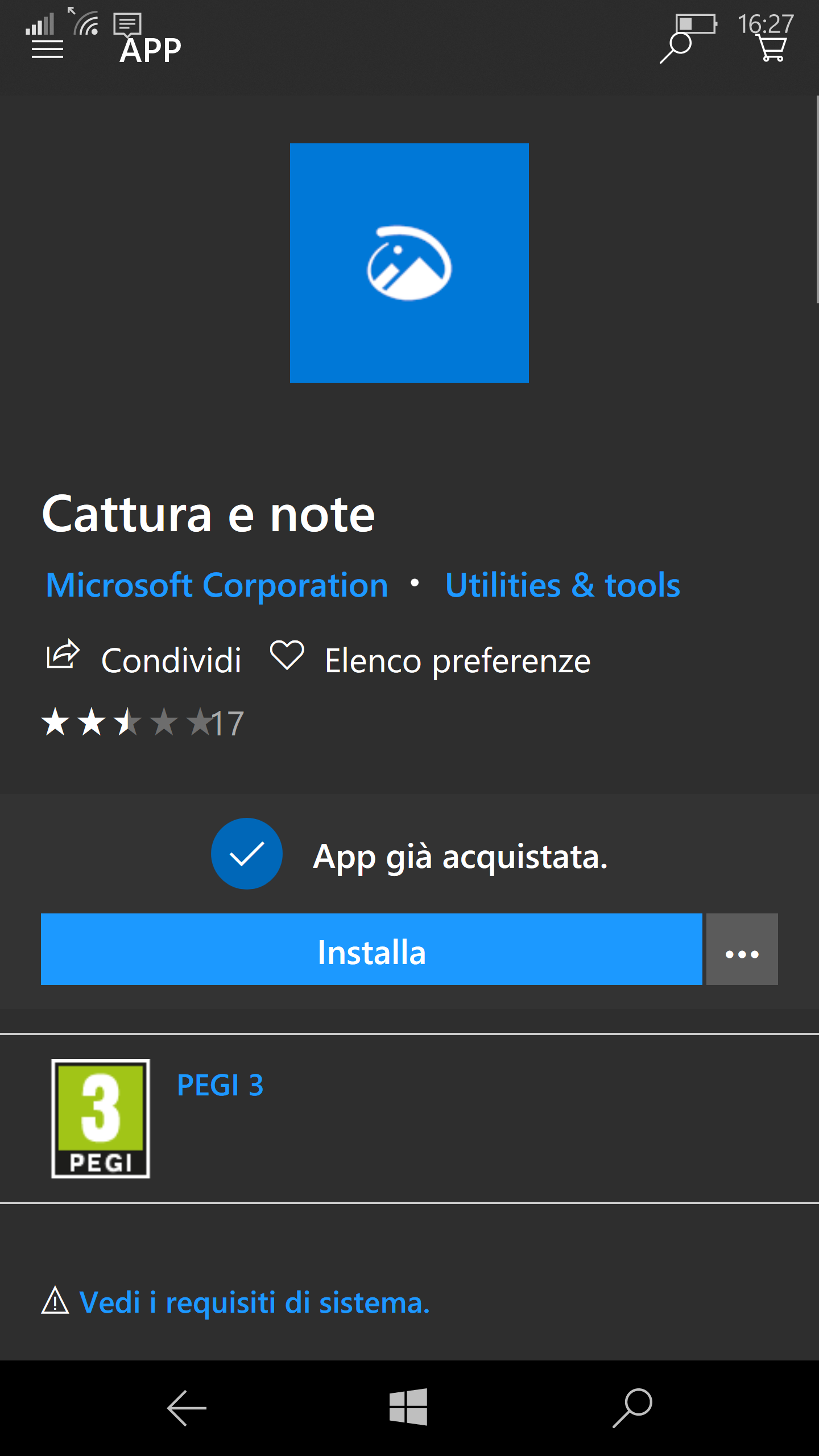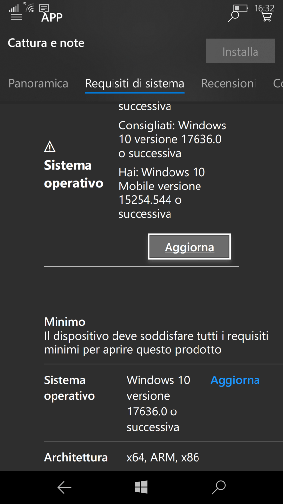 Even though, even from a Windows 10 Mobile device, you can find that app in the Store, and it is marked as available on PC, Mobile device and Hub (so possibly a Universal Windows app), unfortunately if you try to install it in a Lumia smartphone (e.g. Lumia 950xl) you will see that you cannot … and that app needs an updated Windows 10 S.O.