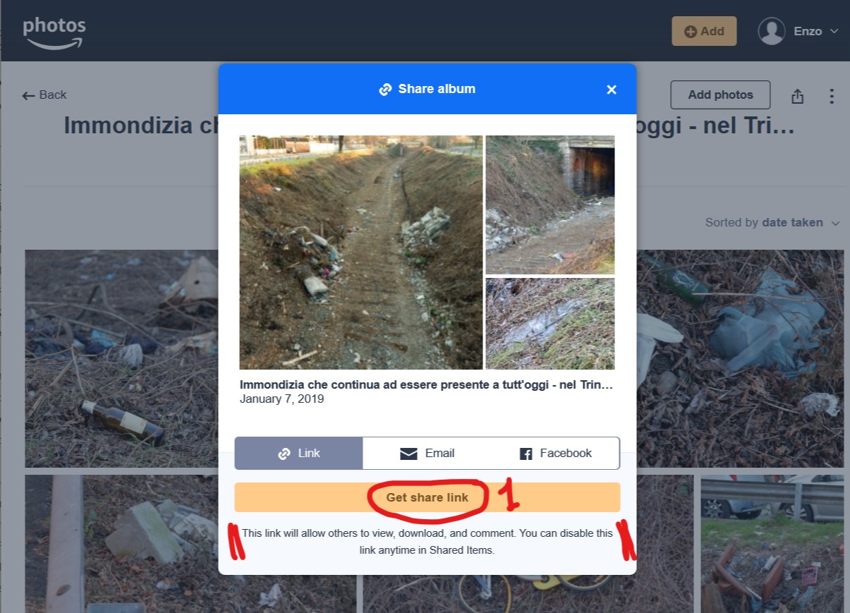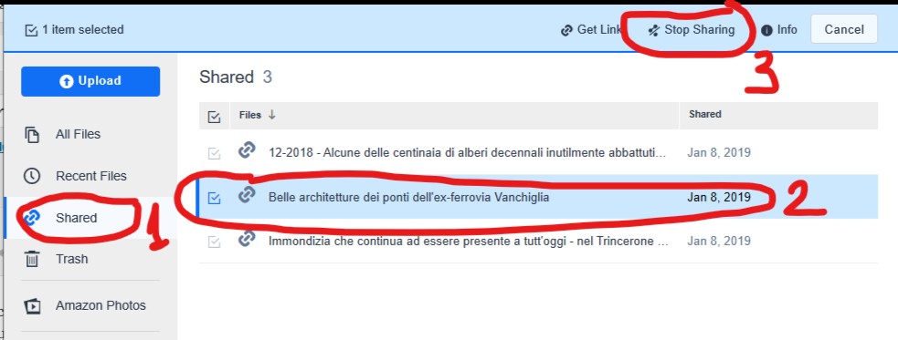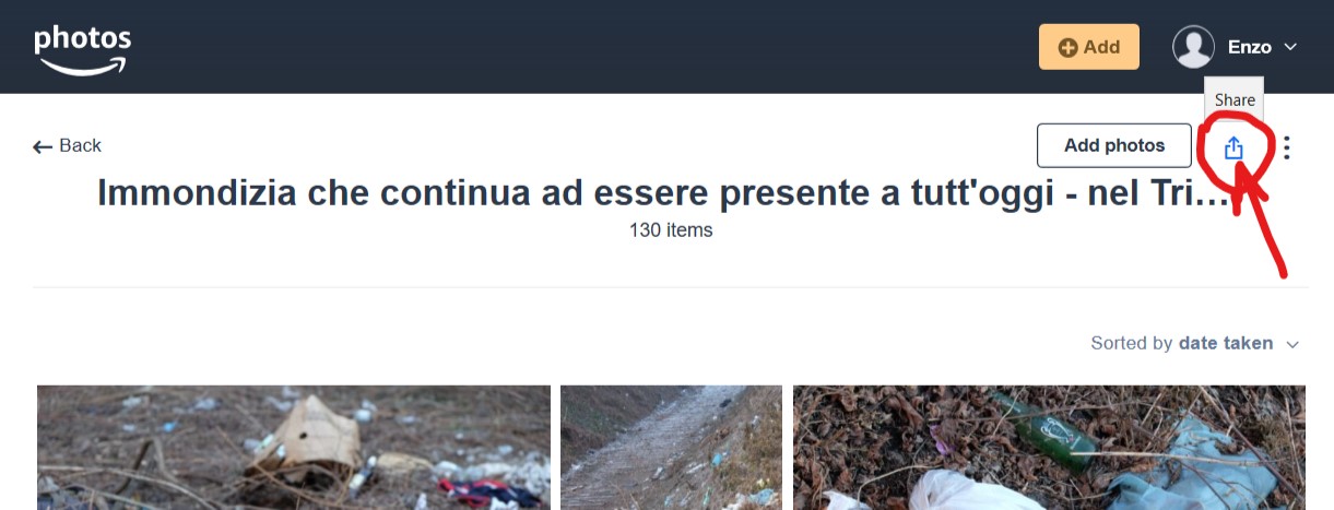 Maybe not everyone knows that some photos or albums you create in your Amazon storage can be shared with other people or even possibly linked in a blog/site, without wasting memory space for which you should have to pay for: so I did in this post of mine for showing a several pictures slideshow (in Aggiornamenti sul Trincerone tra via Sempione e via Gottardo —> link to Amazon Photo album).