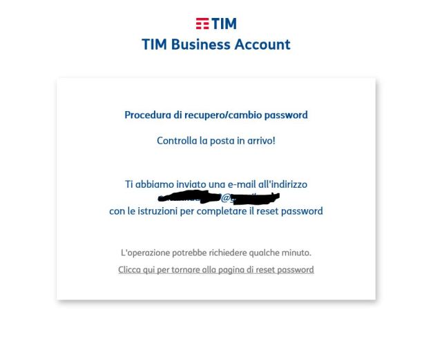 Selezionare Recupero password indicando come email quella medesima inserita nella precedente procedura di richiesta del TIMid.