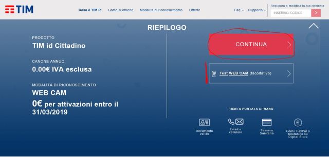 Si conferma la richiesta della TIMid dopo avere compilato un modulo in cui uno deve inserire i propri dati anagrafici, telefono, email ecc …