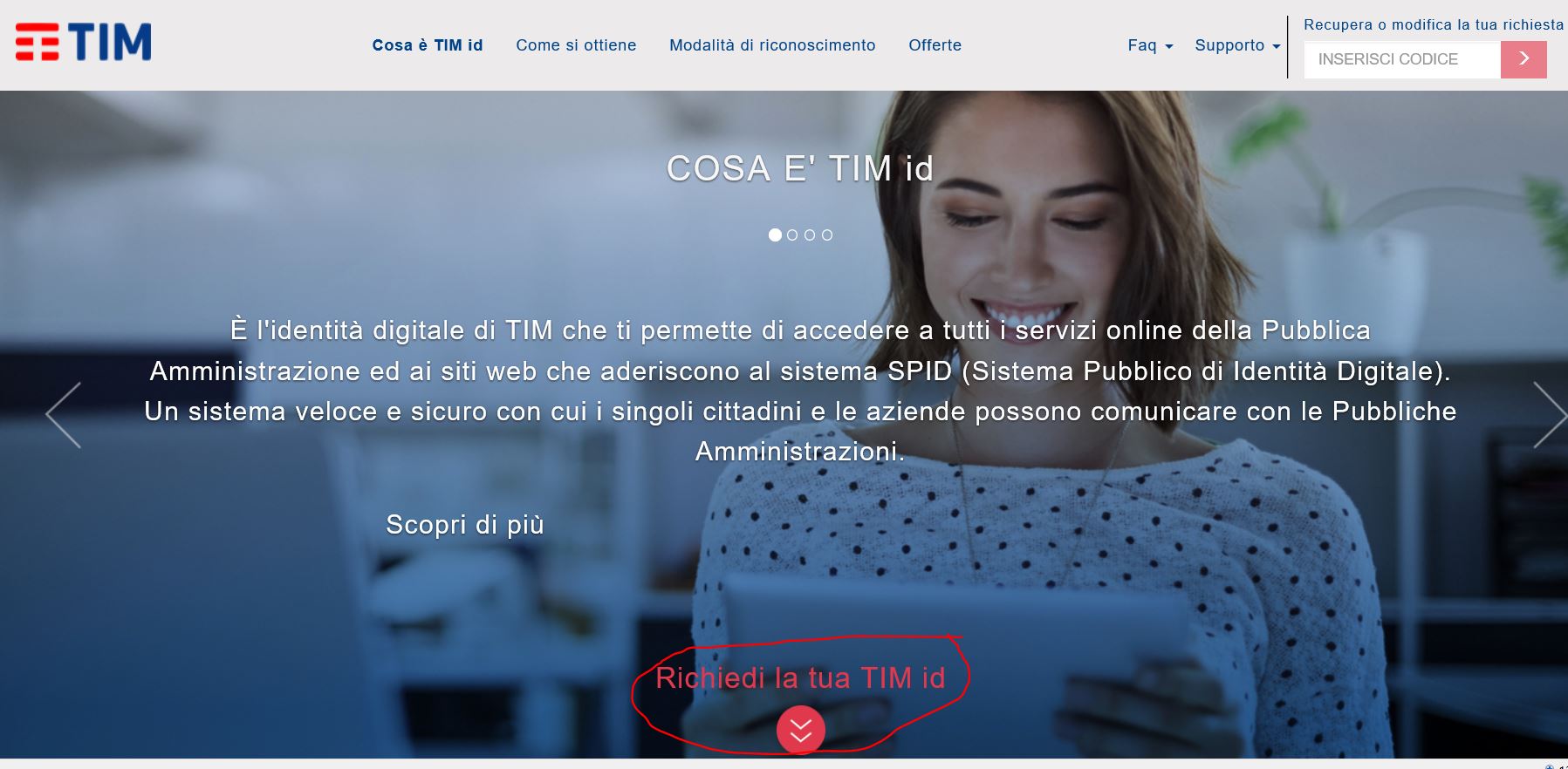 In questa prima sezione descrivo la procedura per richiedere il TIMid, cioè lo SPID rilasciato da TIM che è uno degli Identity Provider autorizzati.