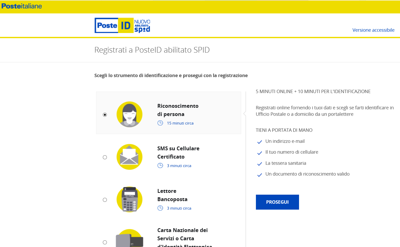 Tra le scelte relative alla identificazione della persona, esiste quella recandosi presso un uffici0 postale abilitato (sono molti, se non tutti):  secondo me è l’alternativa più vantaggiosa in quanto gratuita. Diversamente, esistono altre possibilità quale, ad esempio, un riconoscimento tramite il portalettere: in questo caso però l’operazione ha un costo.