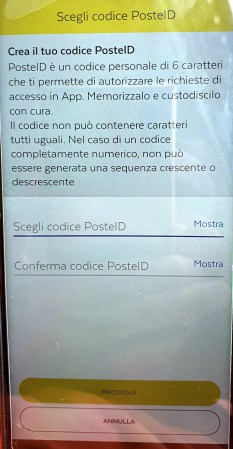 La prima volta che si lancerà quell”app PosteID autenticandosi, verrà poi chiesto di scegliere quale codice posteID uno preferisce, scegliendo a piacere un codice alfanumerico di 6 caratteri