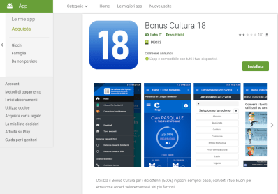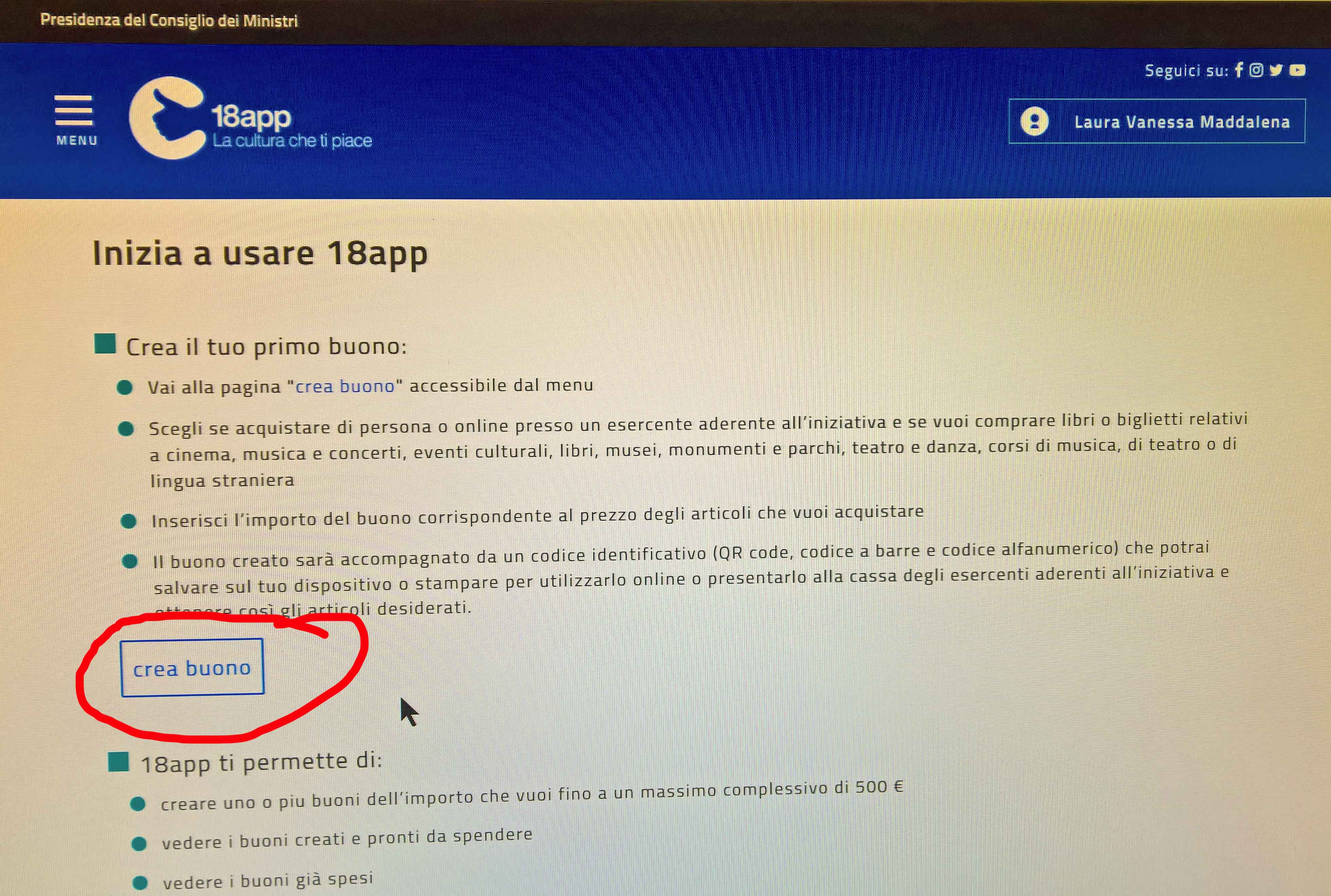 Nei seguenti post mostro i diversi passi che consentiranno di utilizzare il Bonus Cultura: