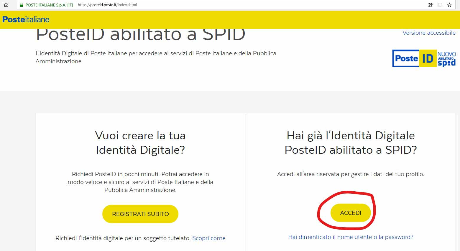 Si ricorda che per gestire il PosteID è necessario andare nel sito posteid.poste.it ed accedere con lo SPID:
