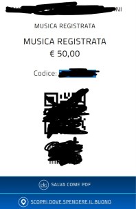 Viene quindi mostrato il codice associato al buono emesso, salvabile anche come file pdf: il tutto viene comunque anche inviato via email: