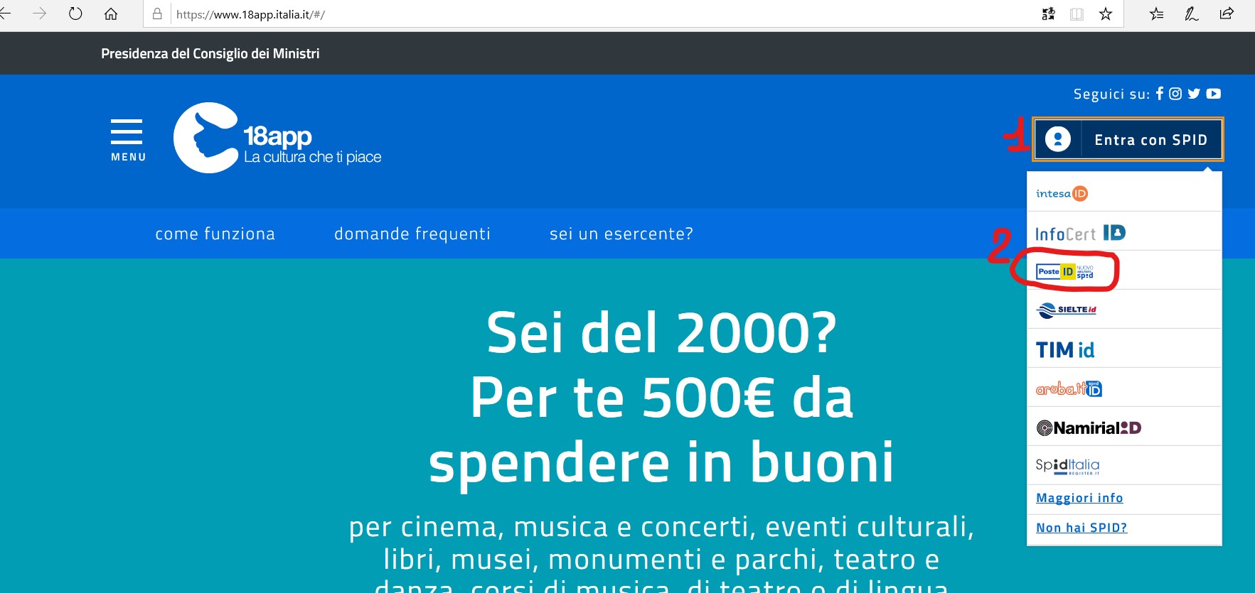 In un altro post ho spiegato poi come effettuare il primo passo, vale a dire ottenere uno SPID (e.g. TIMid, PosteID), requisito indispensabile per poi accedere a quel sito 18app.