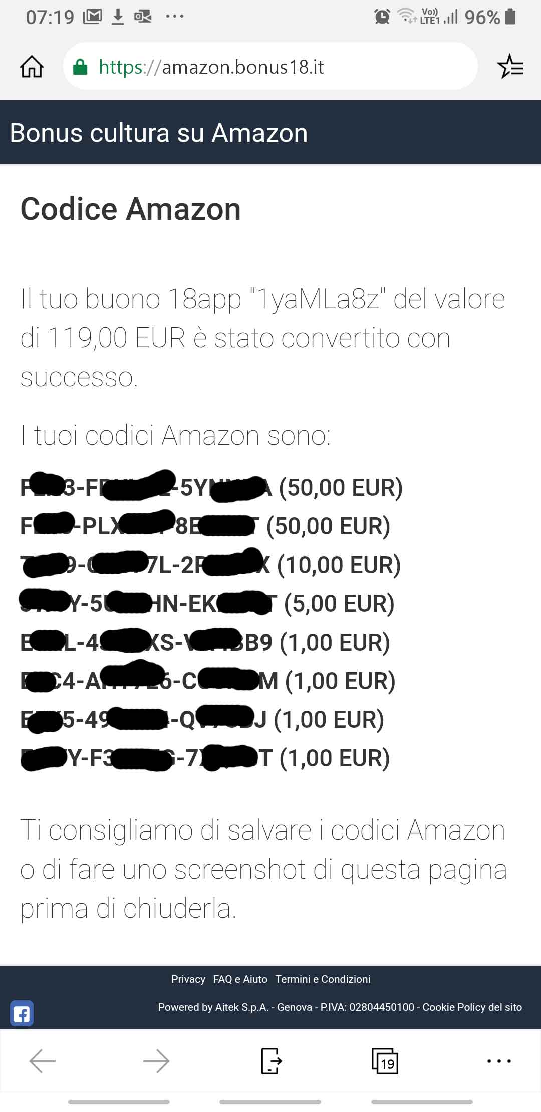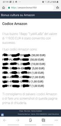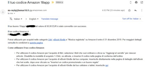 Quindi si deve convertire il buono ottenuto tramite la 18app in buono Amazon.