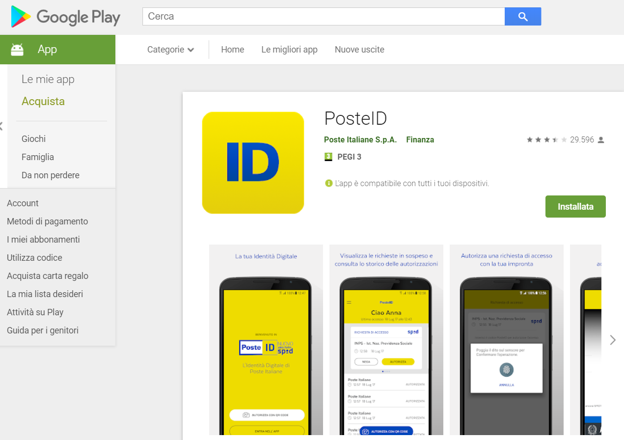 Nel caso di PosteID la verifica dell’accesso tramite quello SPID viene effettuata tramite l’app PosteID disponibile sul Google Play e sul App Store (ma non nel Microsoft Store). Si richiede quindi di avere installato sul proprio smartphone tale app e questa può essere una limitazione se uno non ha un telefonino o se non è uno Android o un iPhone … ma forse io sono uno dei pochi ad avere ancora un cellulare Windows 10 Mobile 🙂