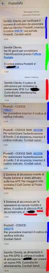 - SMS importanti: contengono codici da annotare e non perdere [da me contrassegnati in rosso]