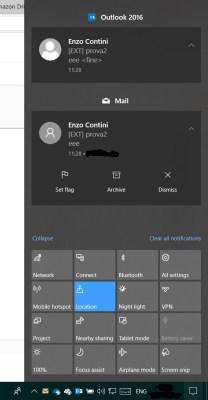 In particular, if you use Outlook desktop application as your preferred email client, it is annoying to get Mail app open every time you click on a new email notification from the Notification panel. However notifications in that panel comes from all the running app/applications: so, at the reception of a new email, you will receive a notification from both Mail and Outlook 2016. Note that the notification from Outlook 2016 will arrive only if that desktop application is running, while the one from Mail app comes anyway, even though that app was not launched before.