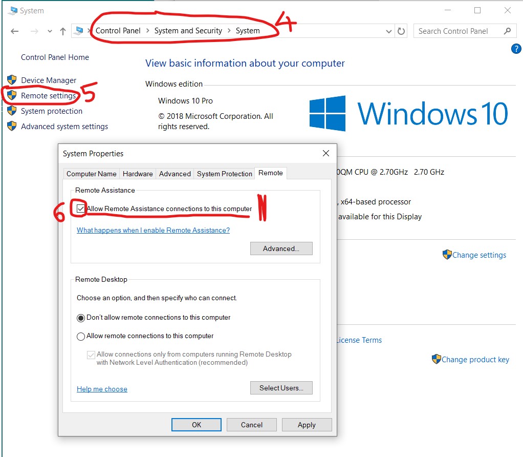 - First you need to set the “Allow Remote Assistance connection to this computer” option on your computer.