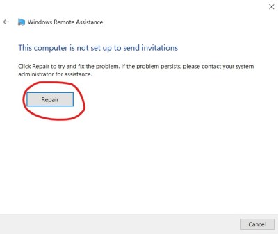 NOTE – It could happen that, when you run that Remote Assistance client the first time, the following alert appear, saying that the computer is not set up to send invitations. In this case you need to click the Repair button in order to identify (and possibly let Windows 10 solve automatically) the cause of that warning: