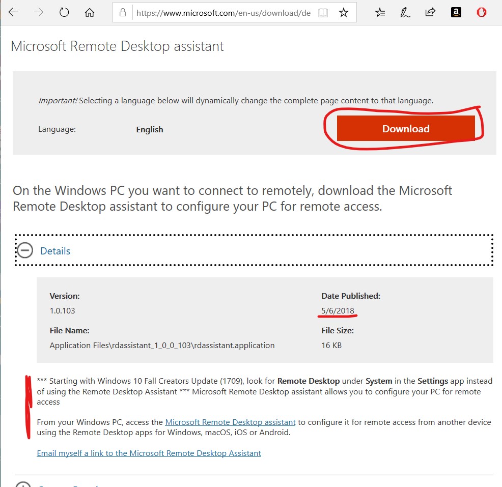 However, as stated in the Details, it is now suggested to use the app version: ” *** Starting with Windows 10 Fall Creators Update (1709), look for Remote Desktop under System in the Settings app (IT: Desktop Remoto Microsoft) instead of using the Remote Desktop Assistant ***”.