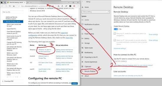 Therefore, going to Settings/Remote Desktop page, you can get the direct link of the Microsoft Remote Desktop app and let install it: