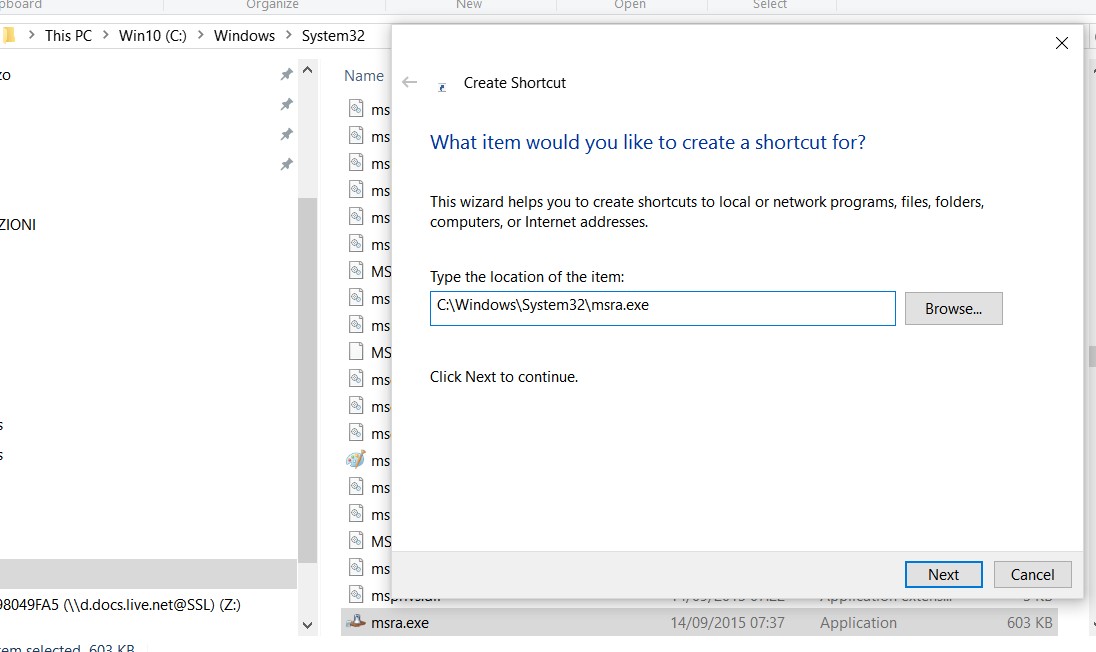 Alternatively, and perhaps easier to be done, you can directly launch that client program from the Run (IT: Esegui) popup windows: on the keyboard, press simultaneously windows button and r key -> windows button + r . Then, in the input field insert the name of the program msra.exe and then click OK to run it:
