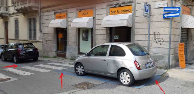 3) A quando, infine, la collocazione di analoghi divieti di fermata in almeno quelle situazioni analoghe da me già indicate nel precedente post/email, in presenza di strisce gialle o blu? Come promemoria le riporto nuovamente, evitando tuttavia di indicare anche quelle analoghe in presenza di strisce bianche in quanto, visti i precedenti, rischierei di far diminuire di qualche percentuale i posti di parcheggio disponibili in Barriera … e questa non è certo la mia intenzione, vista la carenza crescente di spazio per le macchine di fatto presenti! Ovviamente quelle da me fotografate e riportate nel seguito sono solo una minuscola percentuale di quelle esistenti sul territorio Comunale …