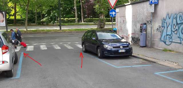 Inutile è stata la mia sollecita risposta di stupore e contrarietà, che addirittura documentava situazioni analoghe in cui quel principio ipotetico di sicurezza non era assolutamente rispettato, e questo anche in contesti di parcheggi con linee gialle e blu … ed a centinaia ne avrei potute inviare di foto essendo una situazione così evidente a tutti e quindi, spero, anche ai destinatari di quella email, essendo preposti a quelle funzioni.