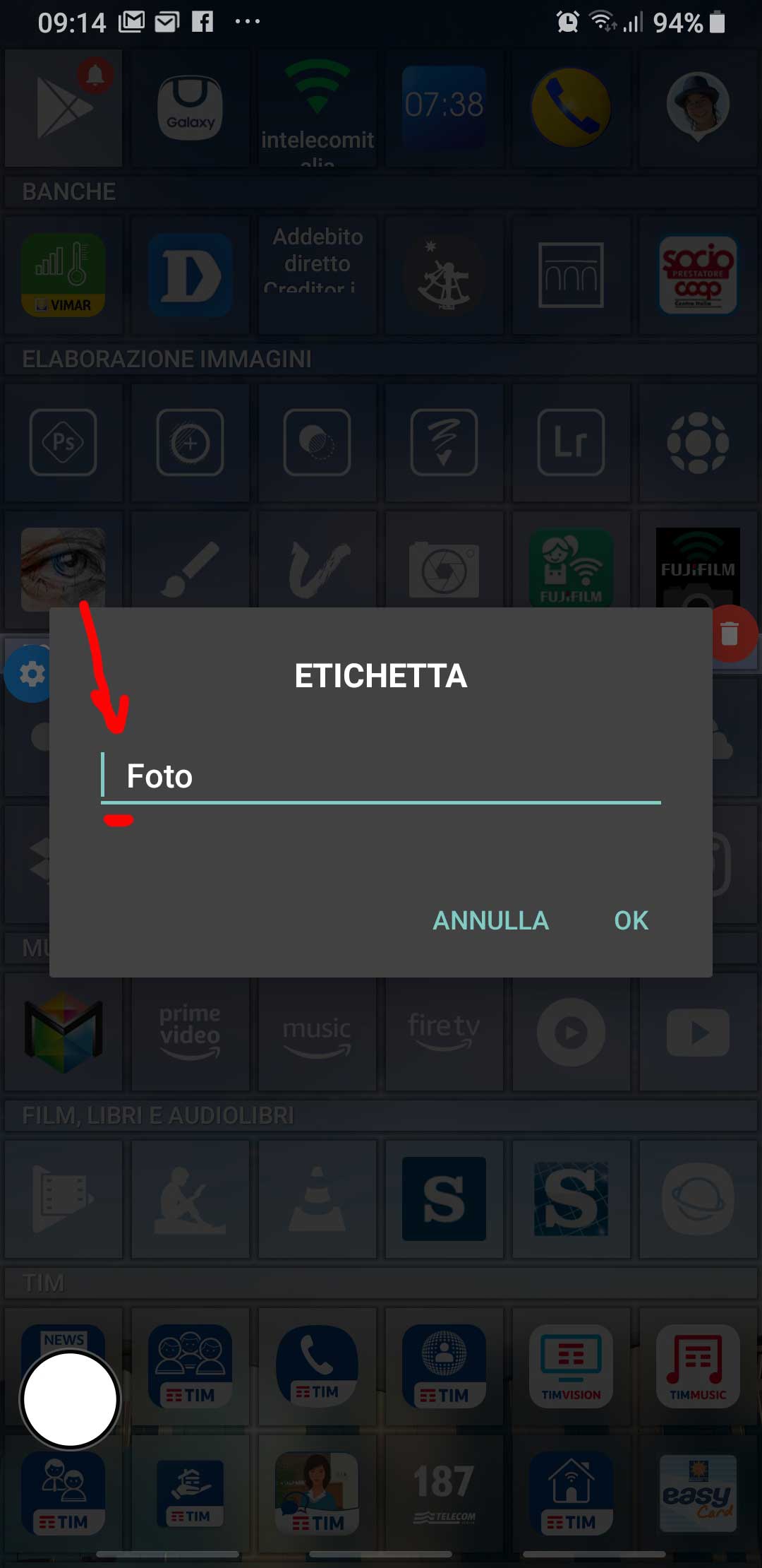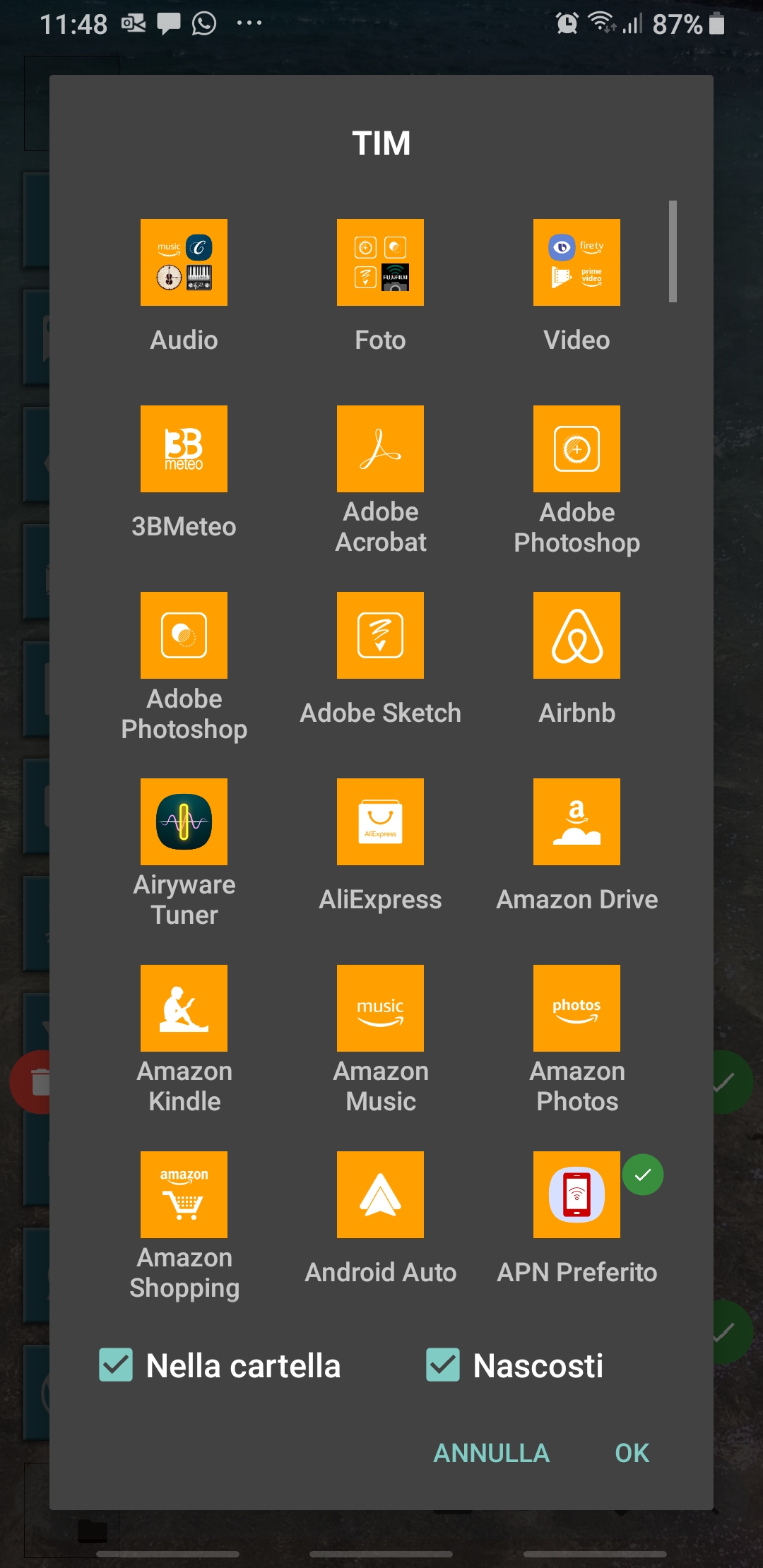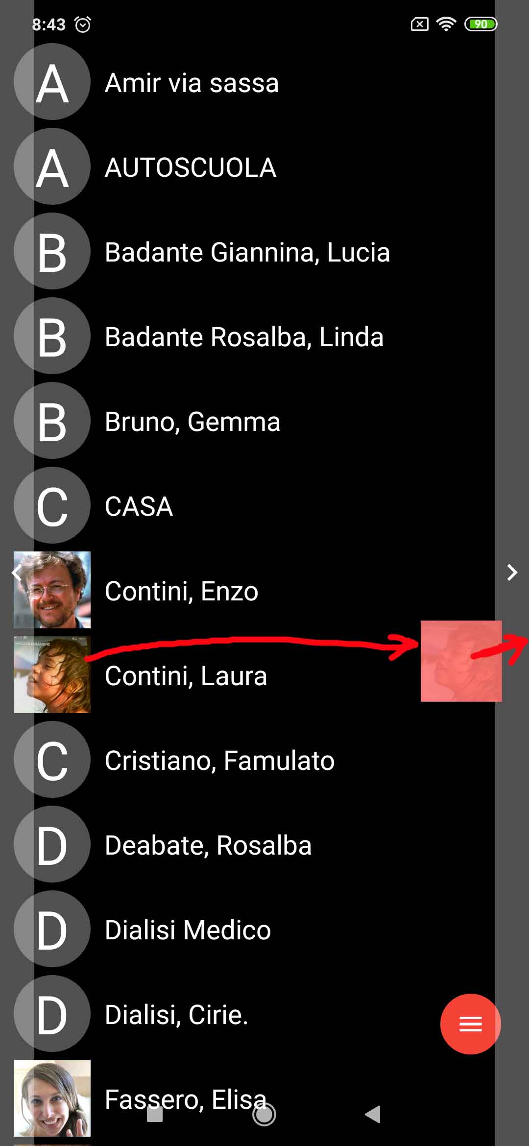 To set those behaviors, as a first step you must add a tile with the picture of the contact. So set the launcher in Modify mode, then click on the “[+]” icon available at the bottom, choose the second option “Link” [ITA: “Collegamento“] and finally Contact [IT: Contatto]. Selecting the wanted contact (possibly one with an associated photo), an associated tile is created and, whenever pressed, it will open that contact page.