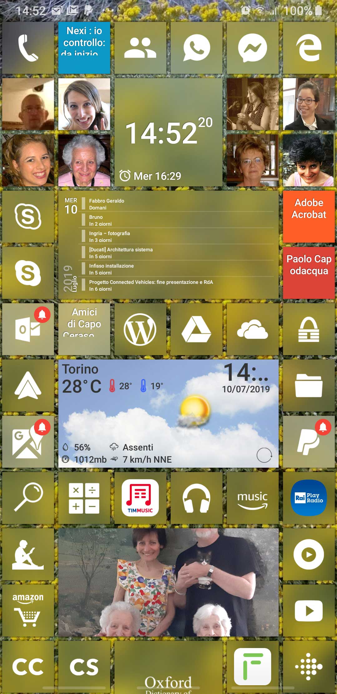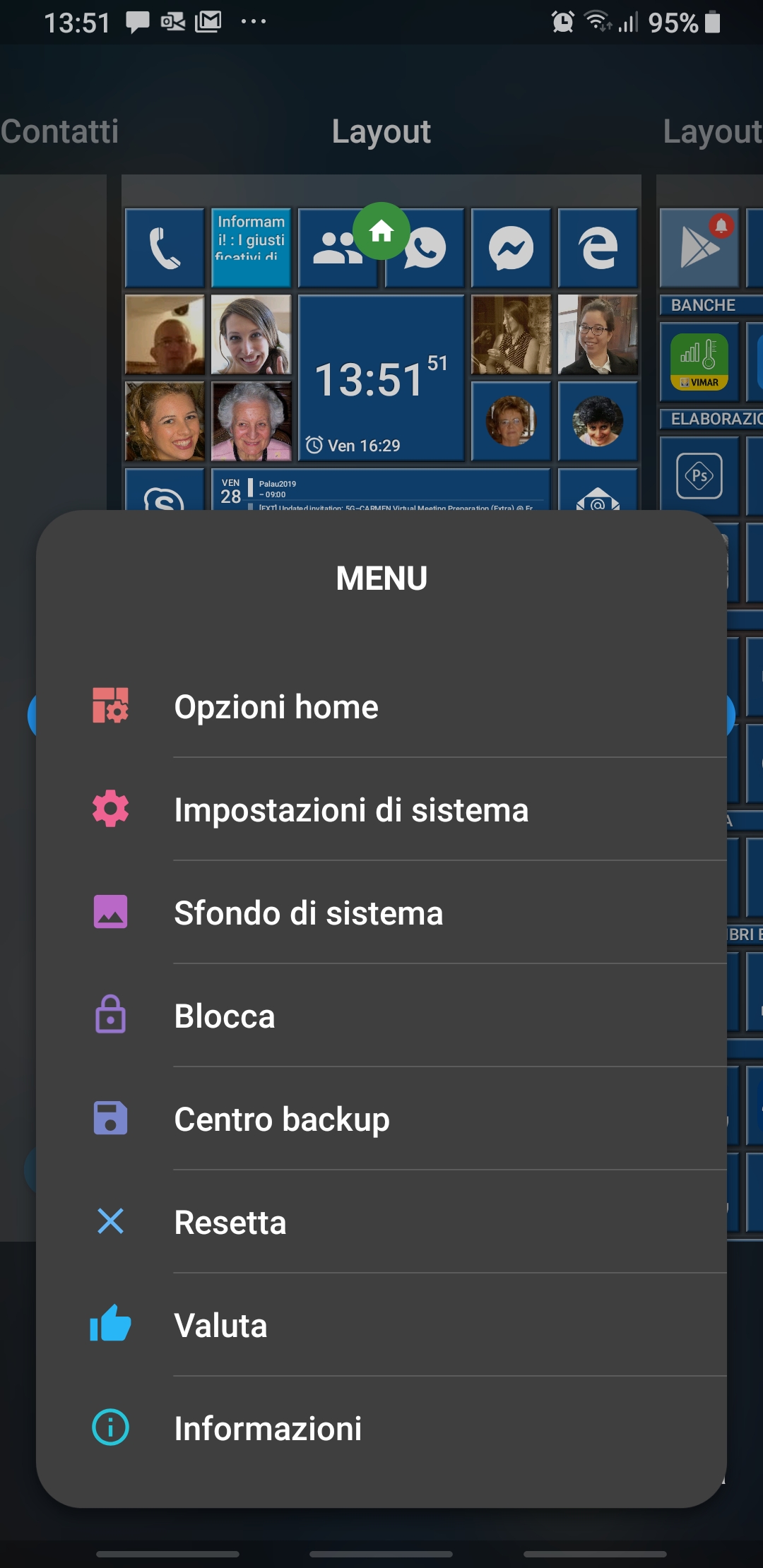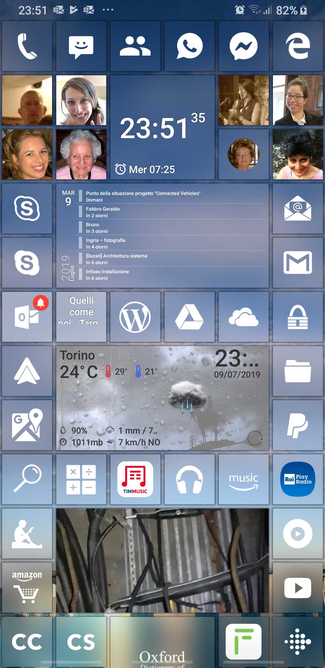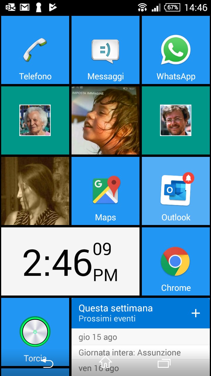 In the following there is another possible configuration, where I added a tile for Outlook app (that handle both Gmail account and Live.it one and includes a Family calendar too).