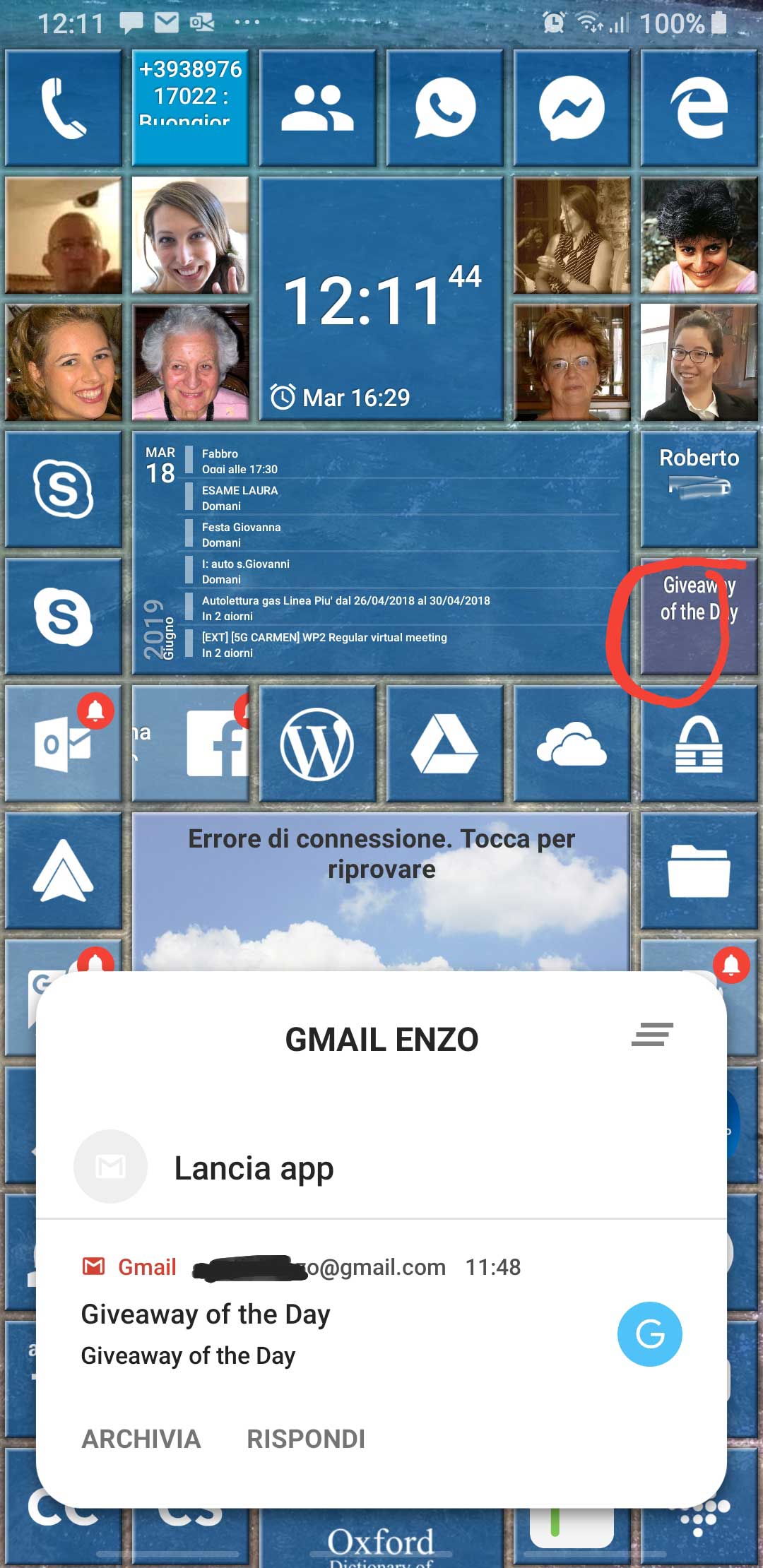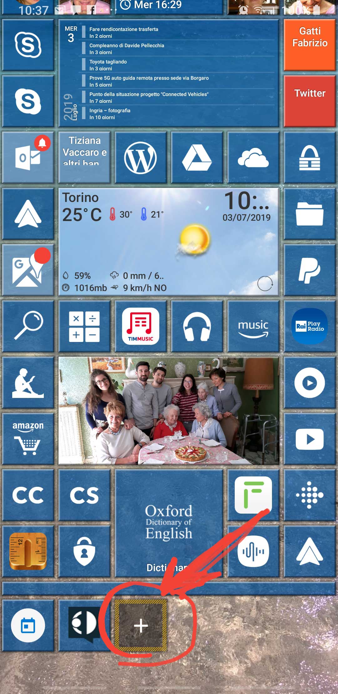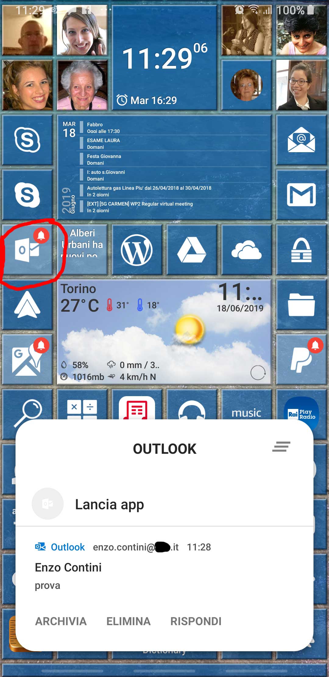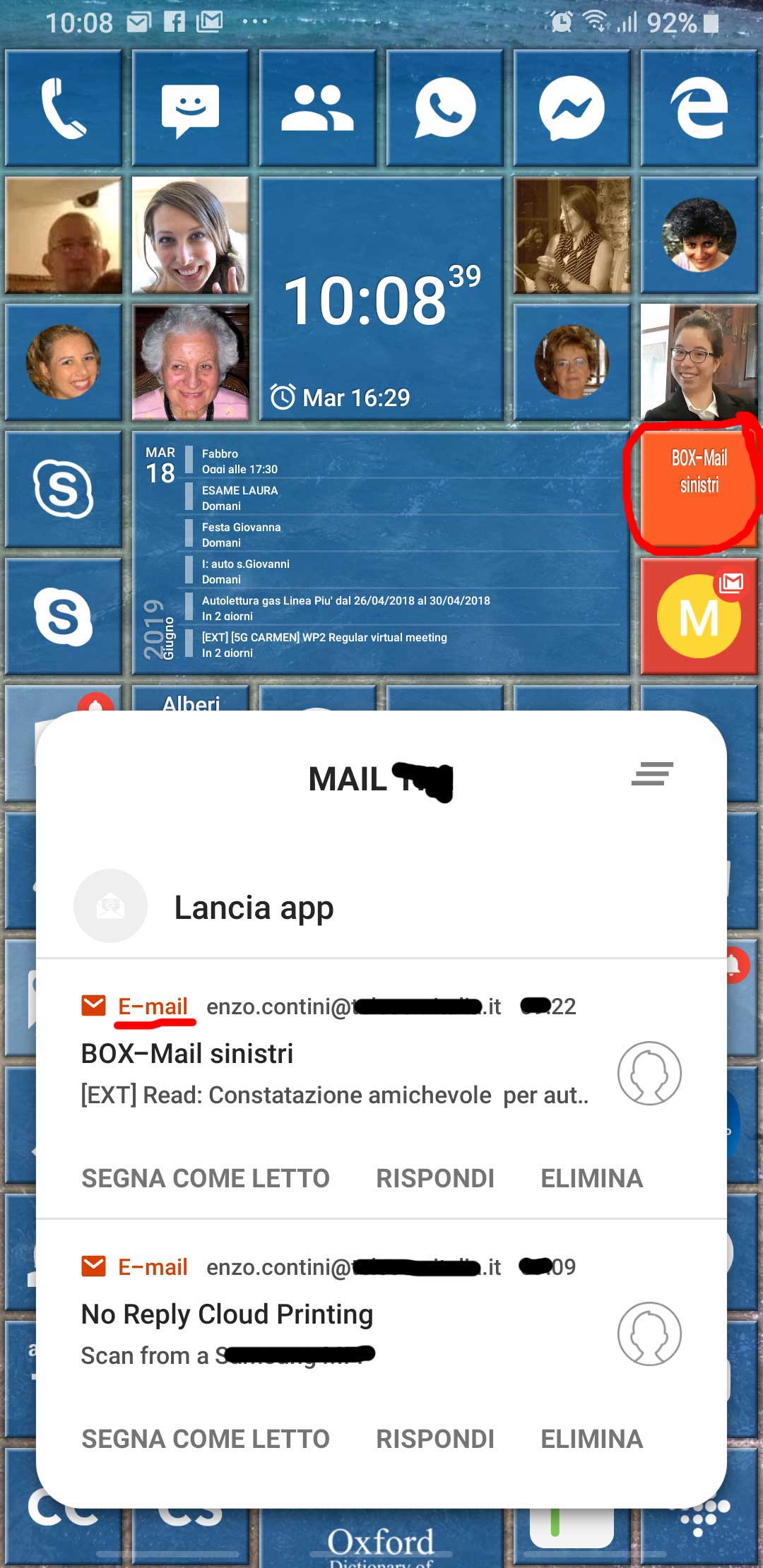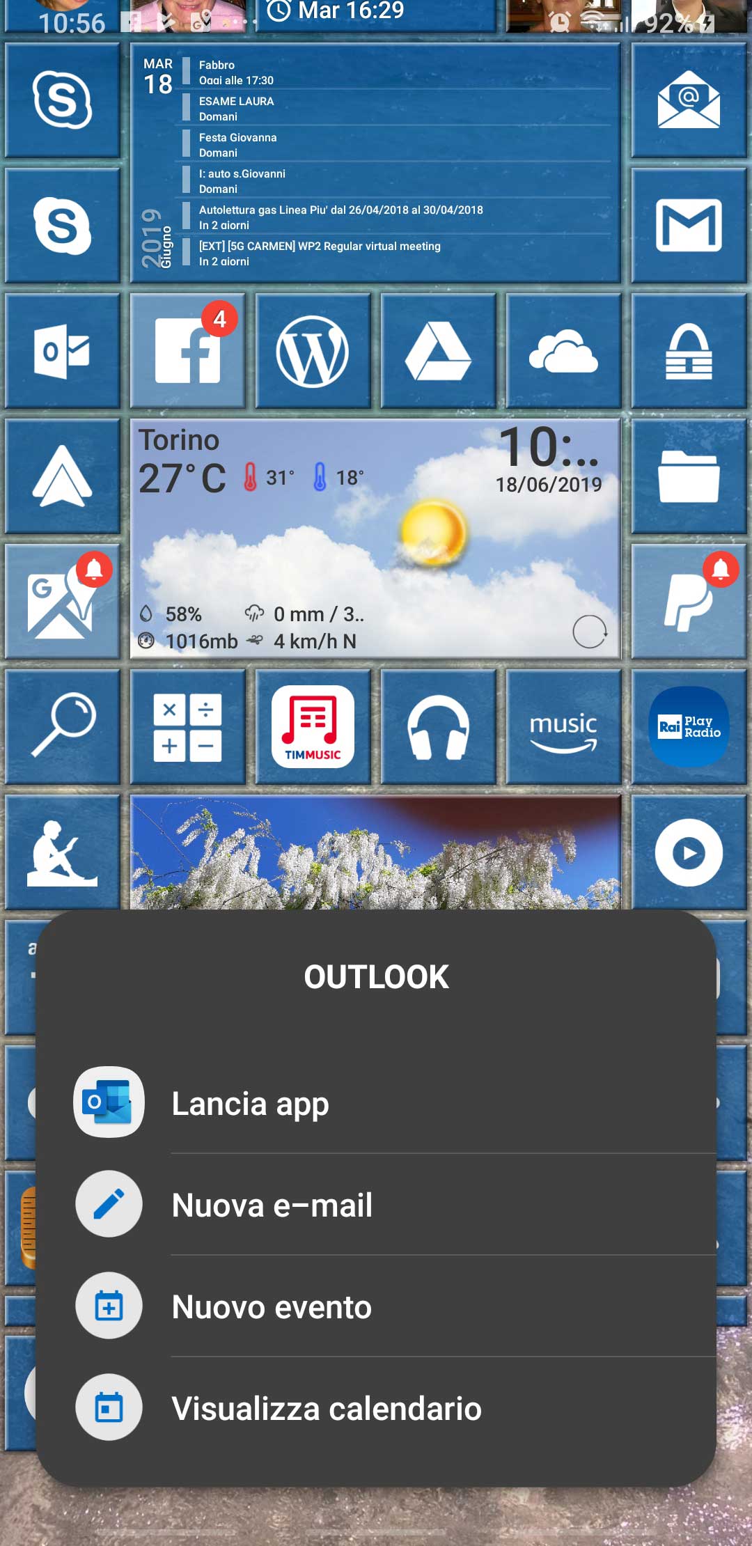 In the following there is another possible configuration, where I added a tile for Outlook app (that handle both Gmail account and Live.it one and includes a Family calendar too).