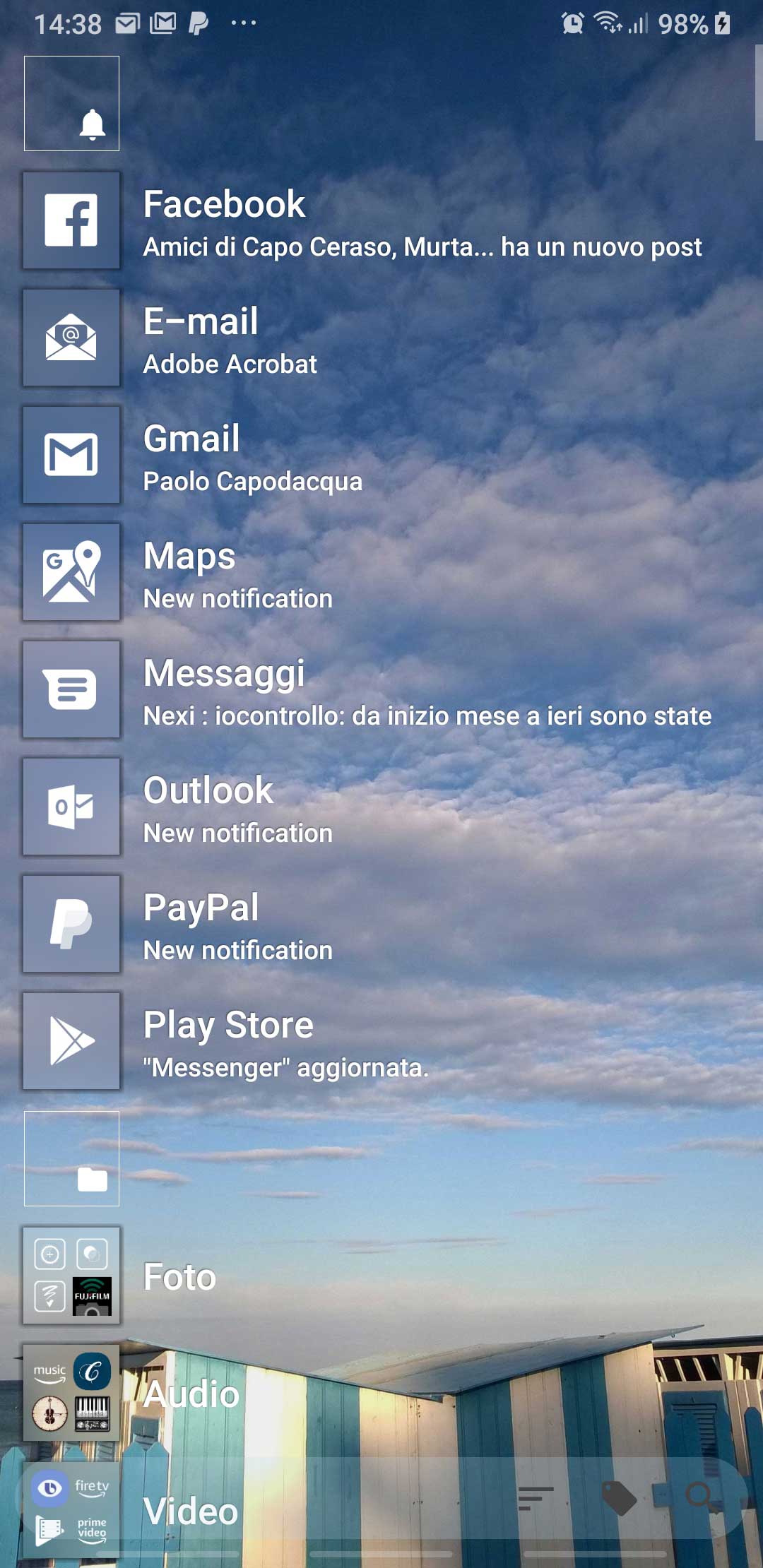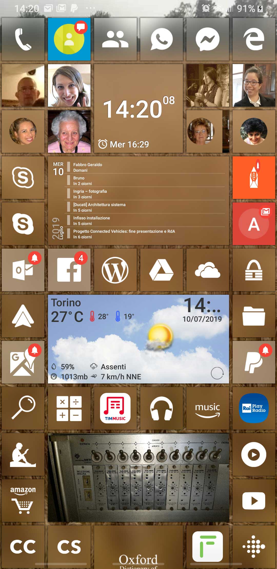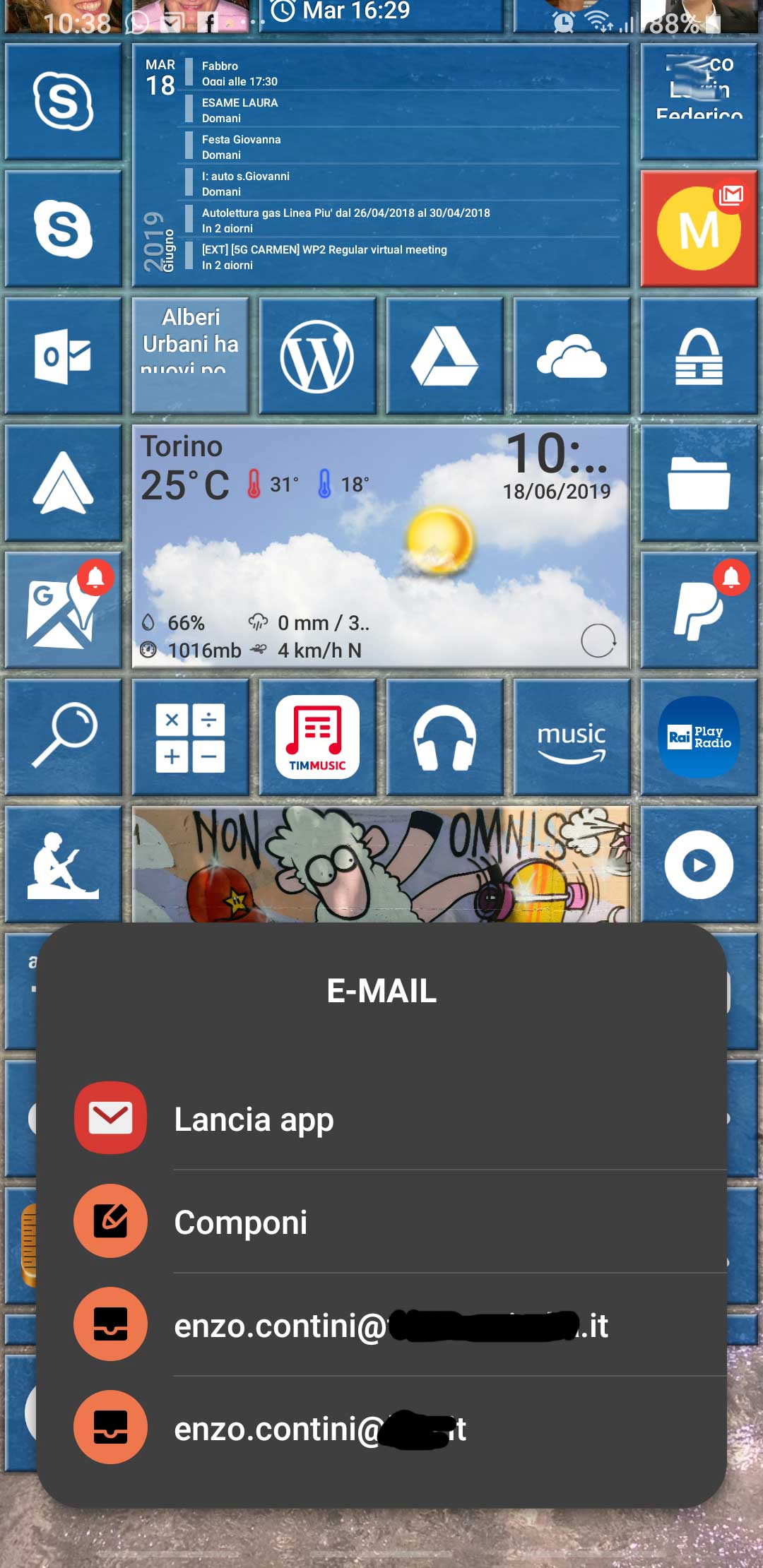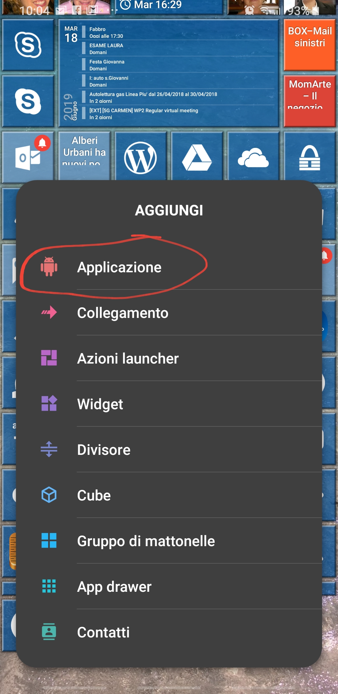 In the following there is another possible configuration, where I added a tile for Outlook app (that handle both Gmail account and Live.it one and includes a Family calendar too).