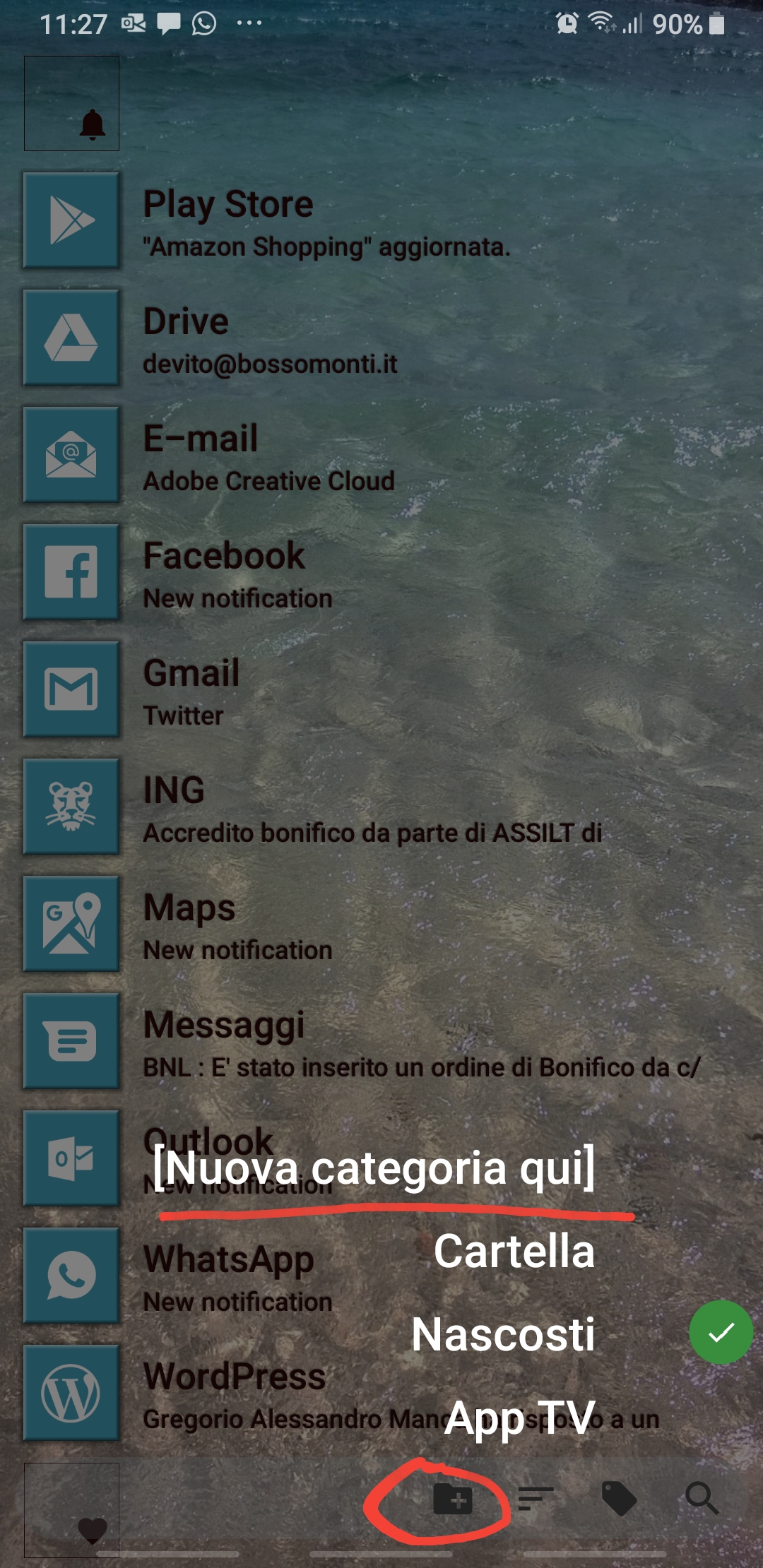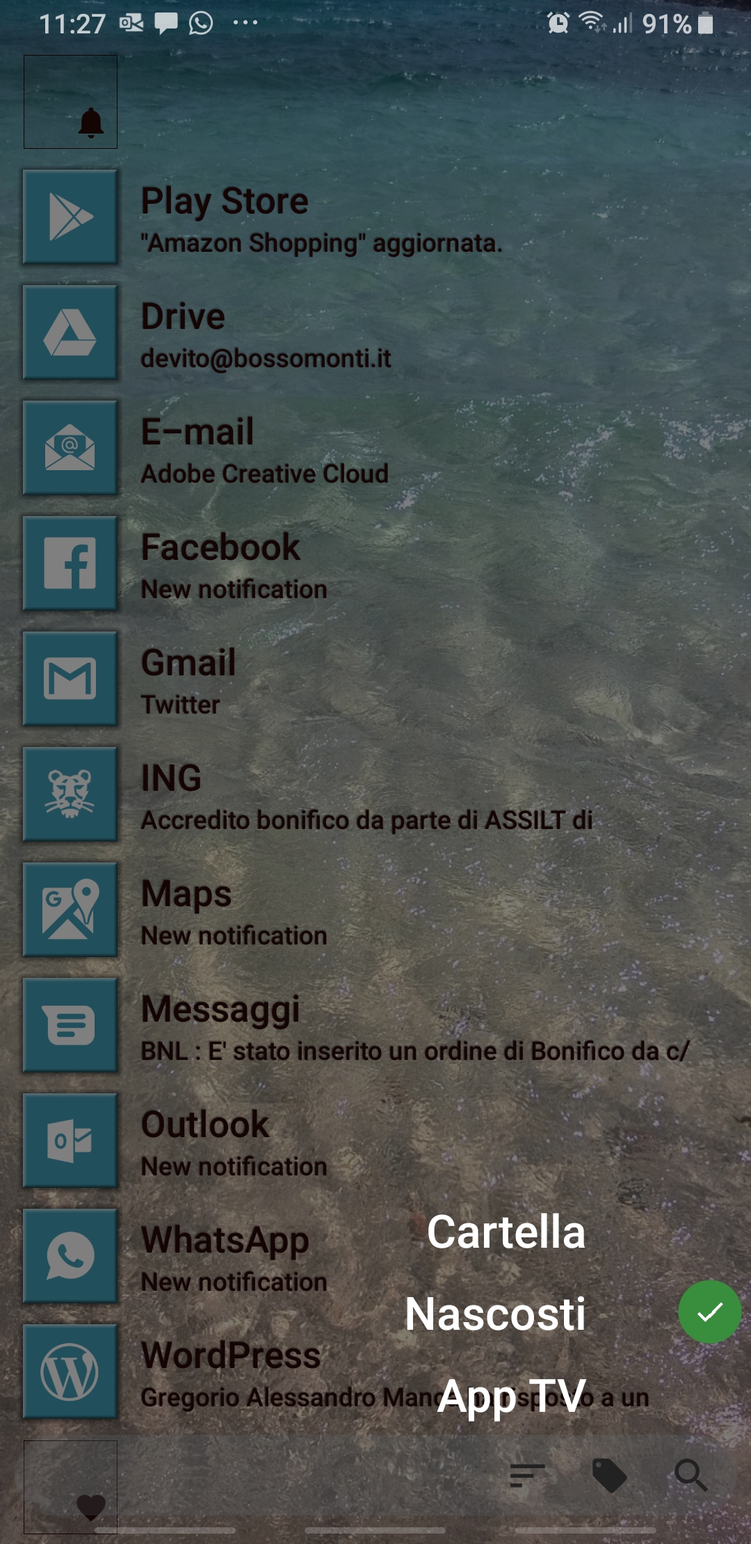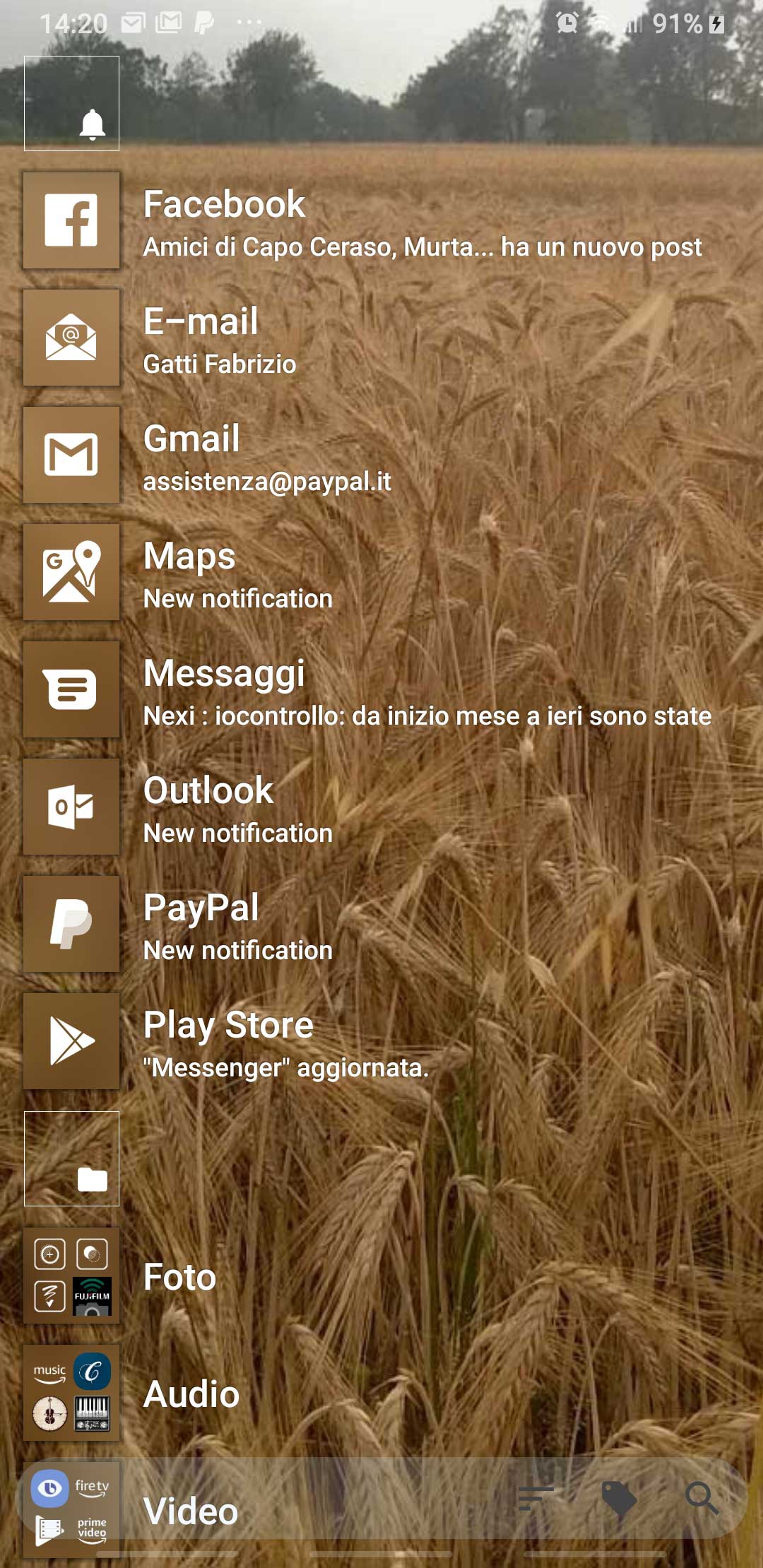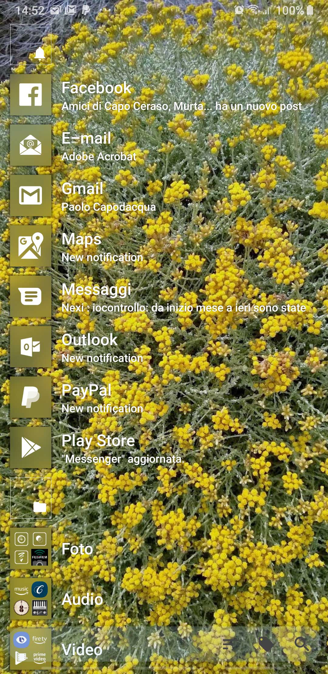In the following there is another possible configuration, where I added a tile for Outlook app (that handle both Gmail account and Live.it one and includes a Family calendar too).