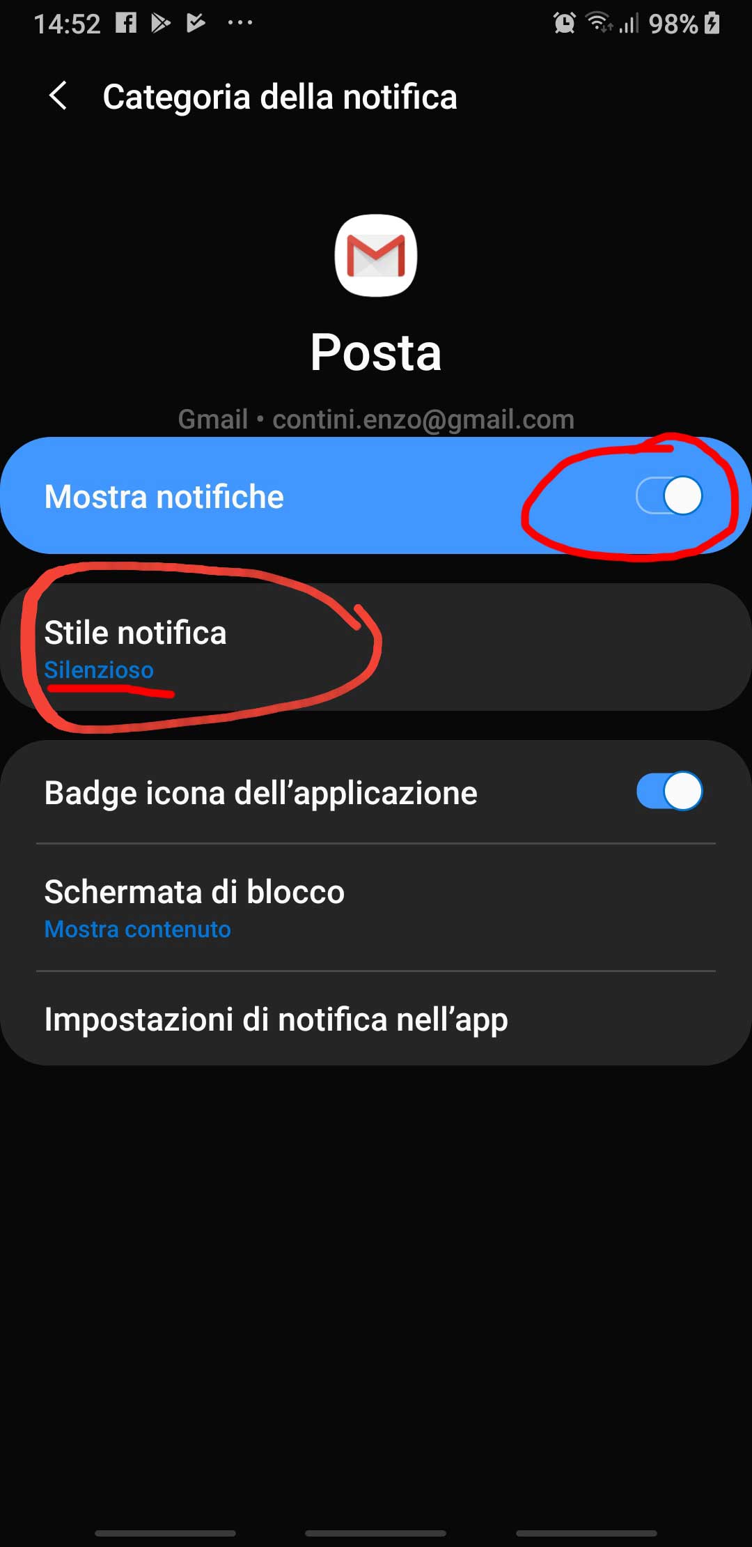 - How to have tile notification for new incoming emails only for a specific account among all the registered ones in the associated mail client app