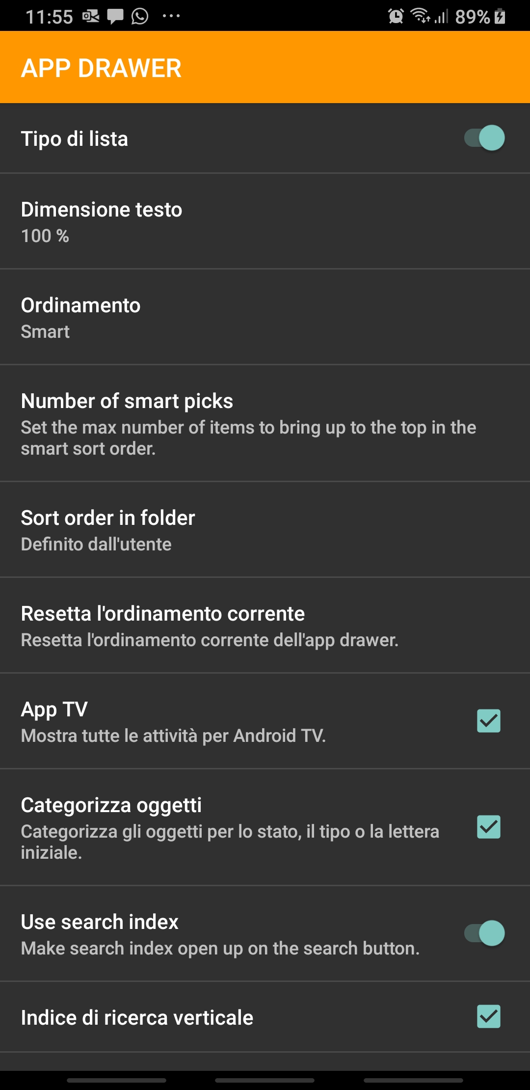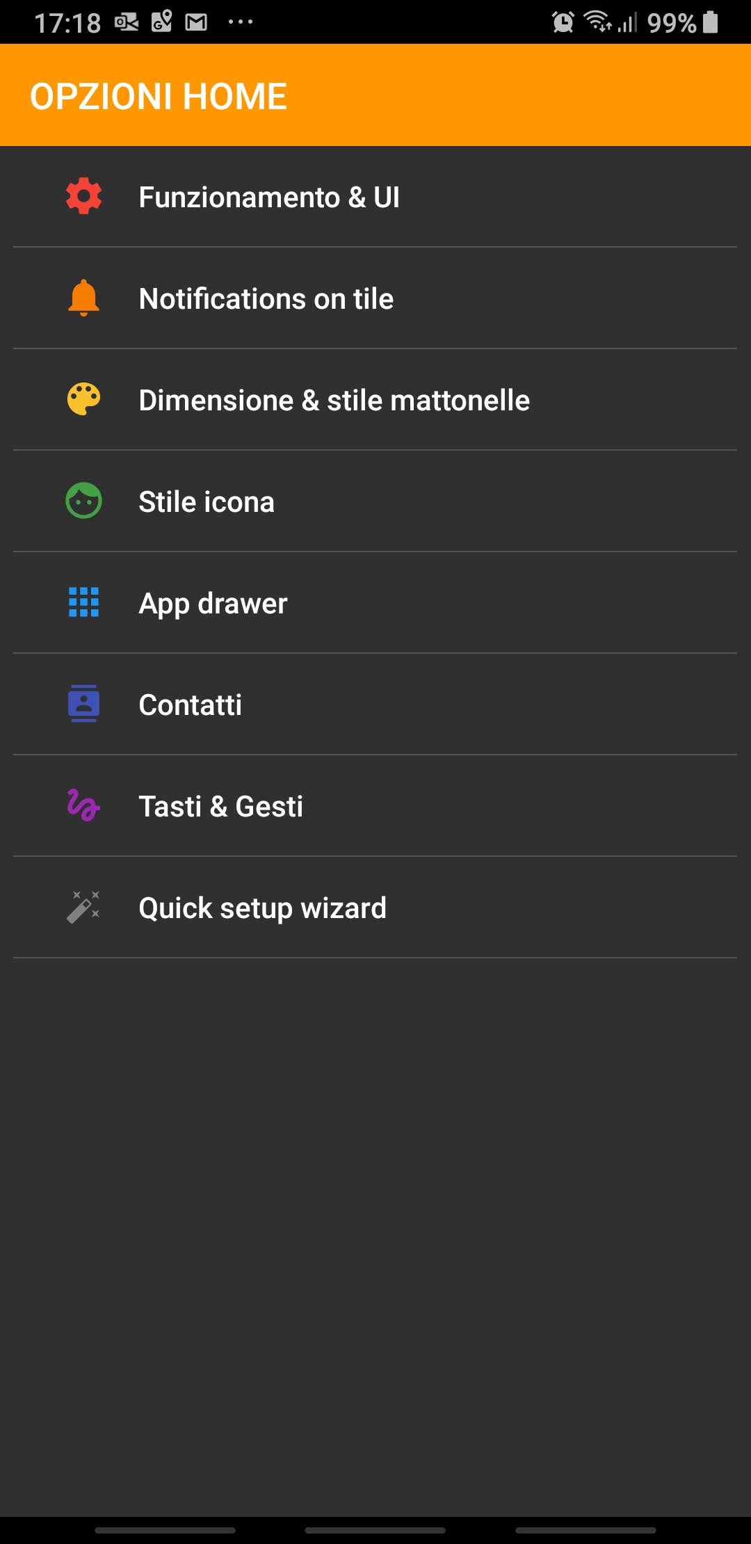In particular, those are the Home options [IT: Opzioni Home] that allows a fine tuning of the user interface: