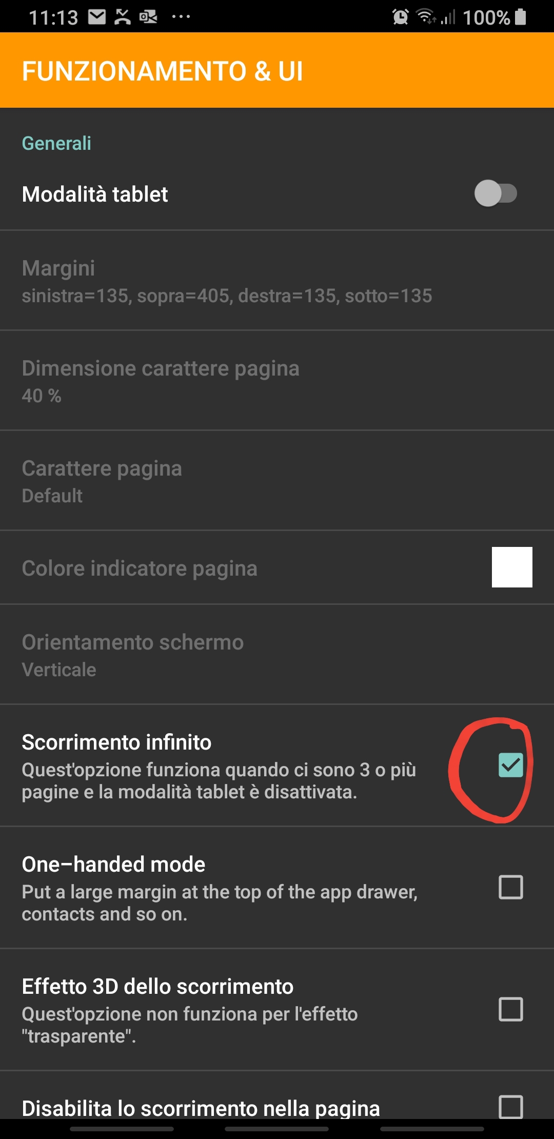 The option to be set is Menu -> Home Options -> Operation & UI -> Infinite scrolling[IT: Menu -> Opzioni home -> Funzionamento & UI -> Scorrimento infinito]. Note that it works only if the Tablet options is disabled.