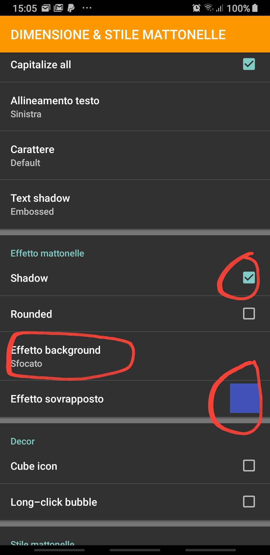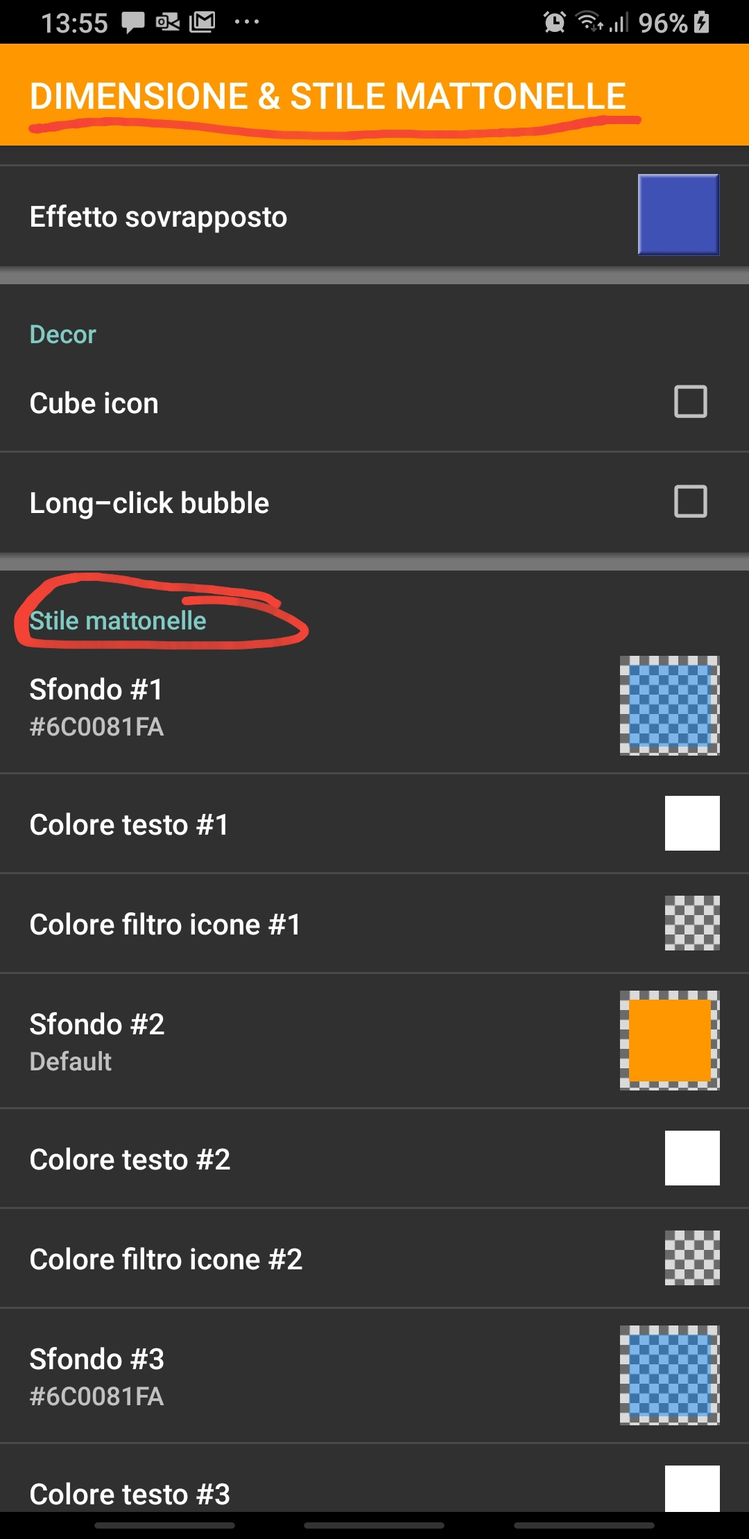 Furthermore, you can even change the look of your Home Square pages changing some options in Menu -> Home options -> Tile dimensions & style [IT: Dimensione & stile mattonelle], like the Tile effect [IT: Effetto background] section one.
