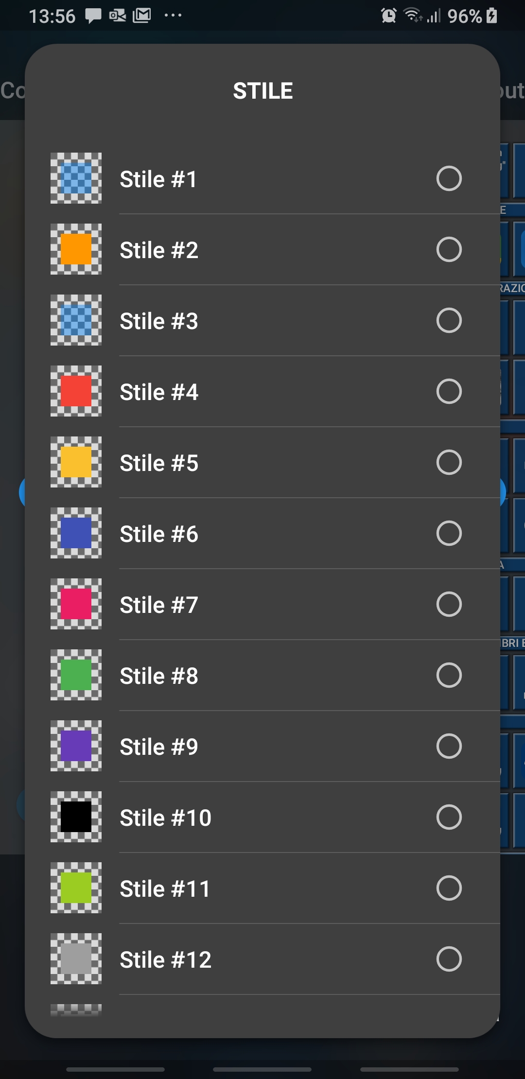 You can easily change the style to display it using the color palette icon. The available styles are those defined in Menu -> Home options ->Tiles dimensions & style [IT: Dimensione & stile mattonelle] -> Tile styles [IT: Stile mattonelle] section: there, you can customize the ones you want to use.