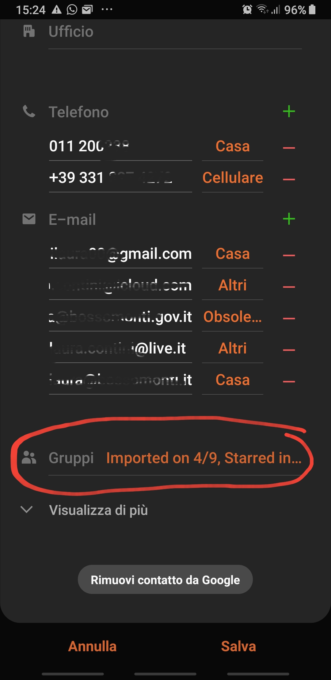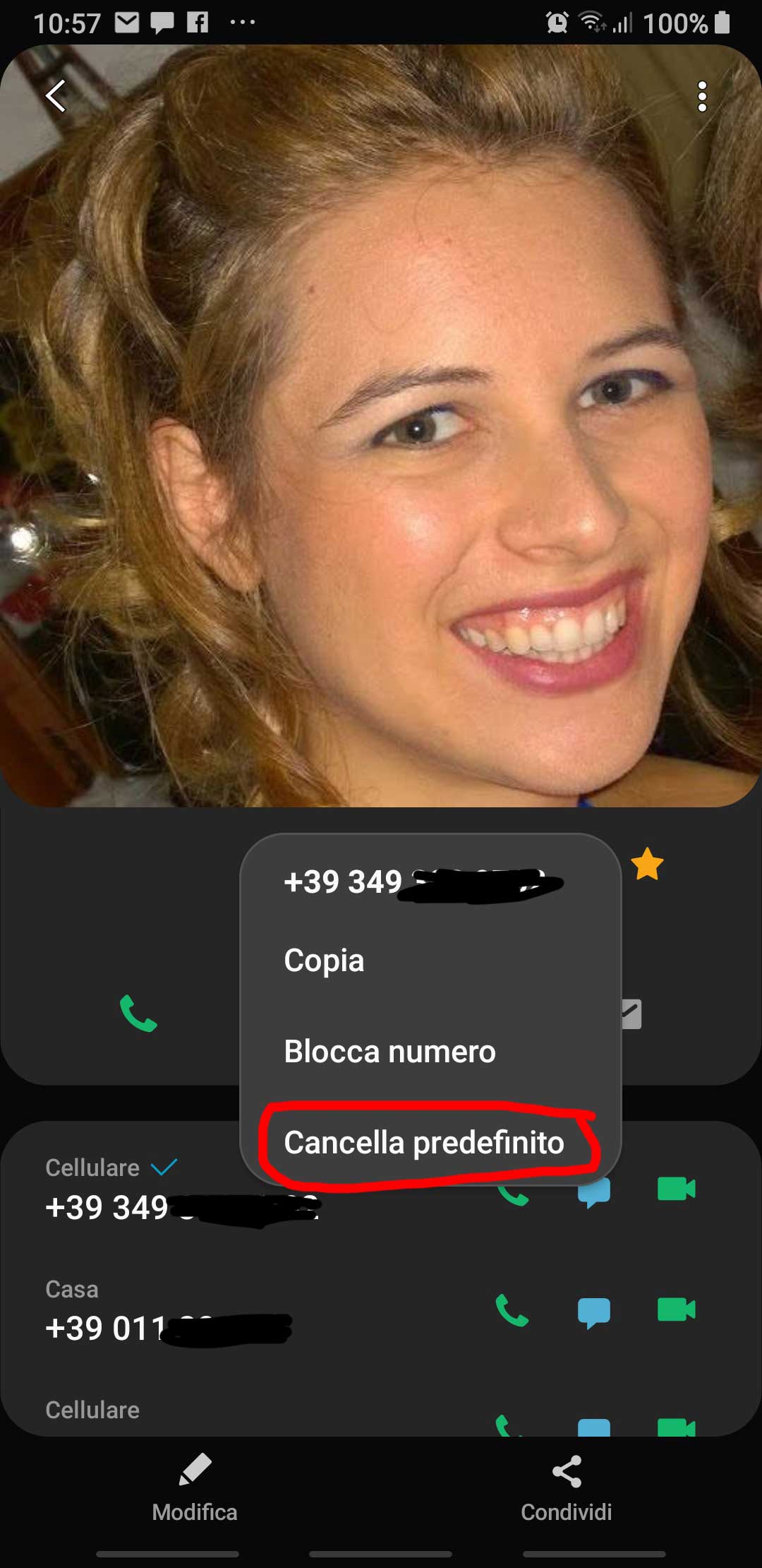You can then always cancel the default phone number if you will want to (e.g. so you’re asked which one to choose among the available ones), simply choosing the Delete default [IT: Cancella preferito] option.