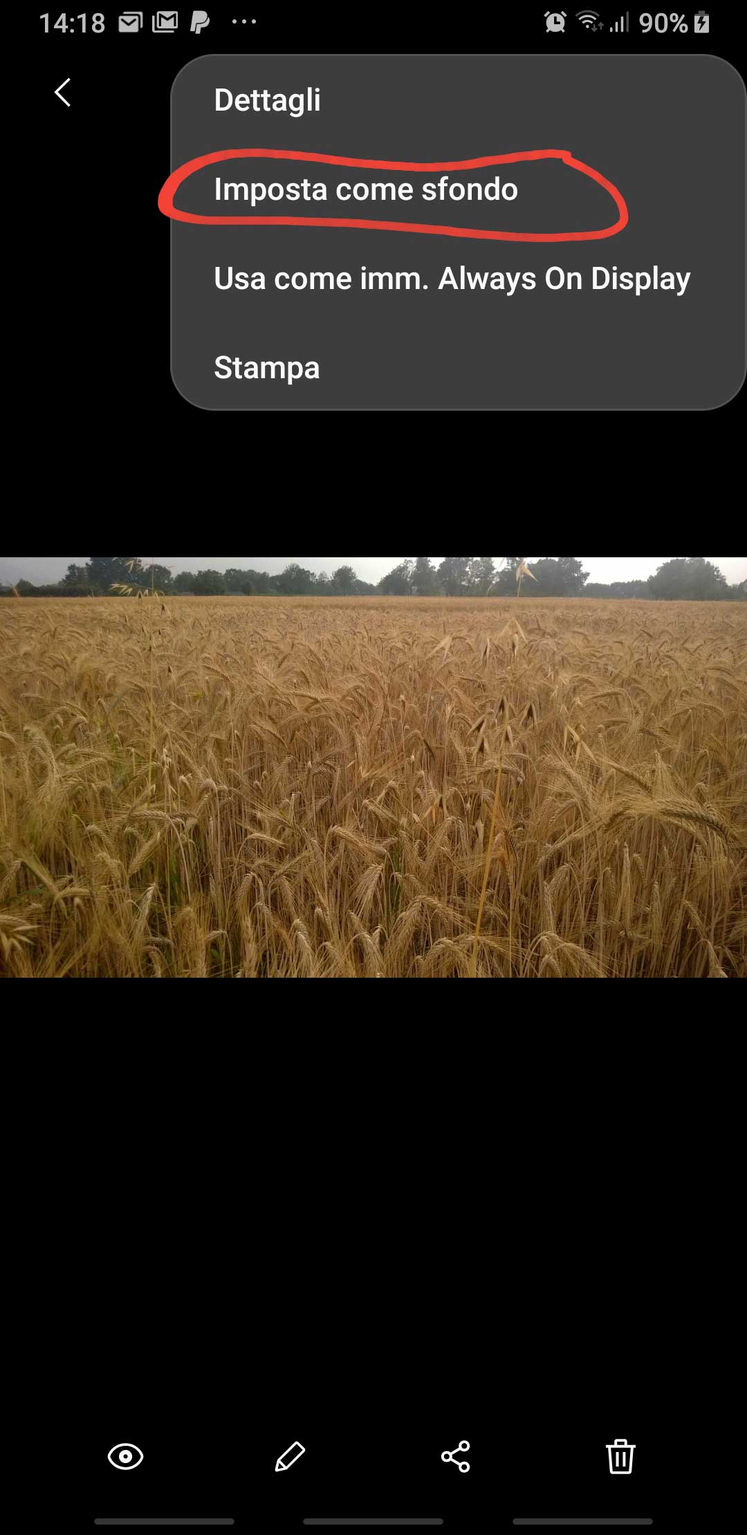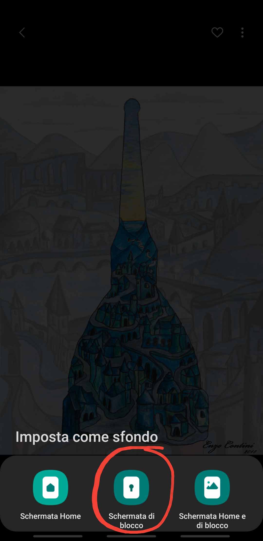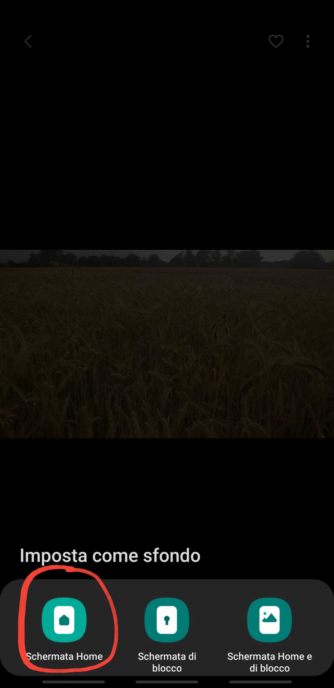 Therefore, if you like to have different images for them, as I do, the best procedure I tested is to go to picture you like with the image browser app embedded in every smartphone, click on the upper right three dots to have the options shown, then select the Set as background [IT: Imposta come sfondo] option. Then you can decide, in the next configuration page, if to set that image only as home background, only as lock screen or as both.
