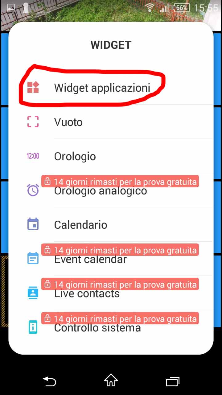 In the free version of Square Home launcher app, few advanced features are no more available after a trial period (e.g. Calendar widget, tiles in relief)