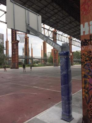 Il Kappa Futurfestival (6-7 luglio 2019) è terminato ormai da più di una settimana, ma non sono stati più rimessi i due canestri, che immagino siano stati tolti per potenziali problemi di sicurezza durante quell’evento. Si noti che, per il canestro collocato più recentemente, parte dell’asta è stata svitata, mentre per l’altro è stato necessario dissaldarla!