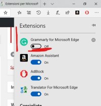 Avevo già scritto un post precedente che mostrava come agevolmente installare alcune delle molteplici estensioni del browser Edge, in particolare quella relativa alla traduzione automatica del testo del sito visualizzato: rimando quindi a quel vecchio (ma sempre valido) post per le semplici istruzioni in merito … limitandomi ora solo ad analizzare nello specifico l’estensione Grammarly for Microsoft Edge, scaricabile anche ‘essa gratuitamente dallo Store di Microsoft. Comunque per installare quella estensione basta cercarla nello store, magari accedendo direttamente all’elenco delle possibili estensioni di Edge, cliccando nel link “Trova nuove estensioni” (presente in fondo alla sezione relativa alle estensioni, presente nelle impostazioni – tre puntini in alto a destra di Edge).