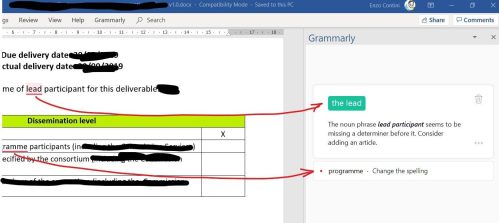 Once the plug-in is installed, a specific Grammarly voice in the menu will be available and, when requested, a window on the right will show the detected errors andd several Grammarly options will be avaìilable on the top menu: