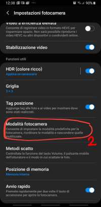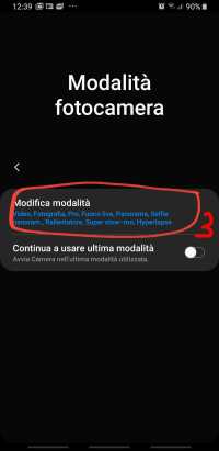 Because you have to go into an internal section of the setting area (3 steps inside!!) and possibly you too didn’t realize the existence of this important section, in the following I show how to reach it step by step: setting icon -> Camera mode -> Change mode (IT: icona Impostazioni -> Modalità fotocamera -> Modifica modalità].