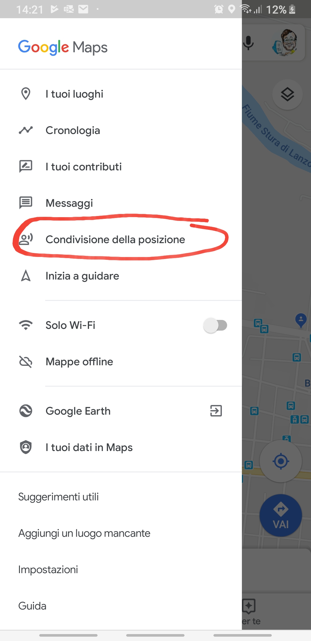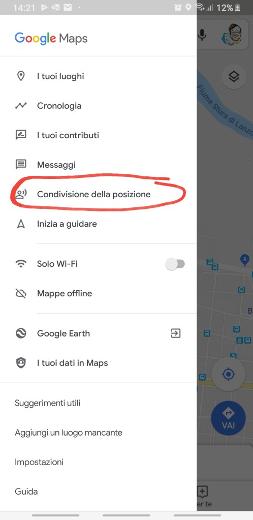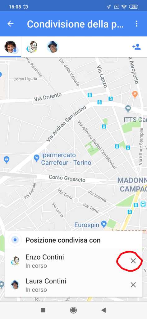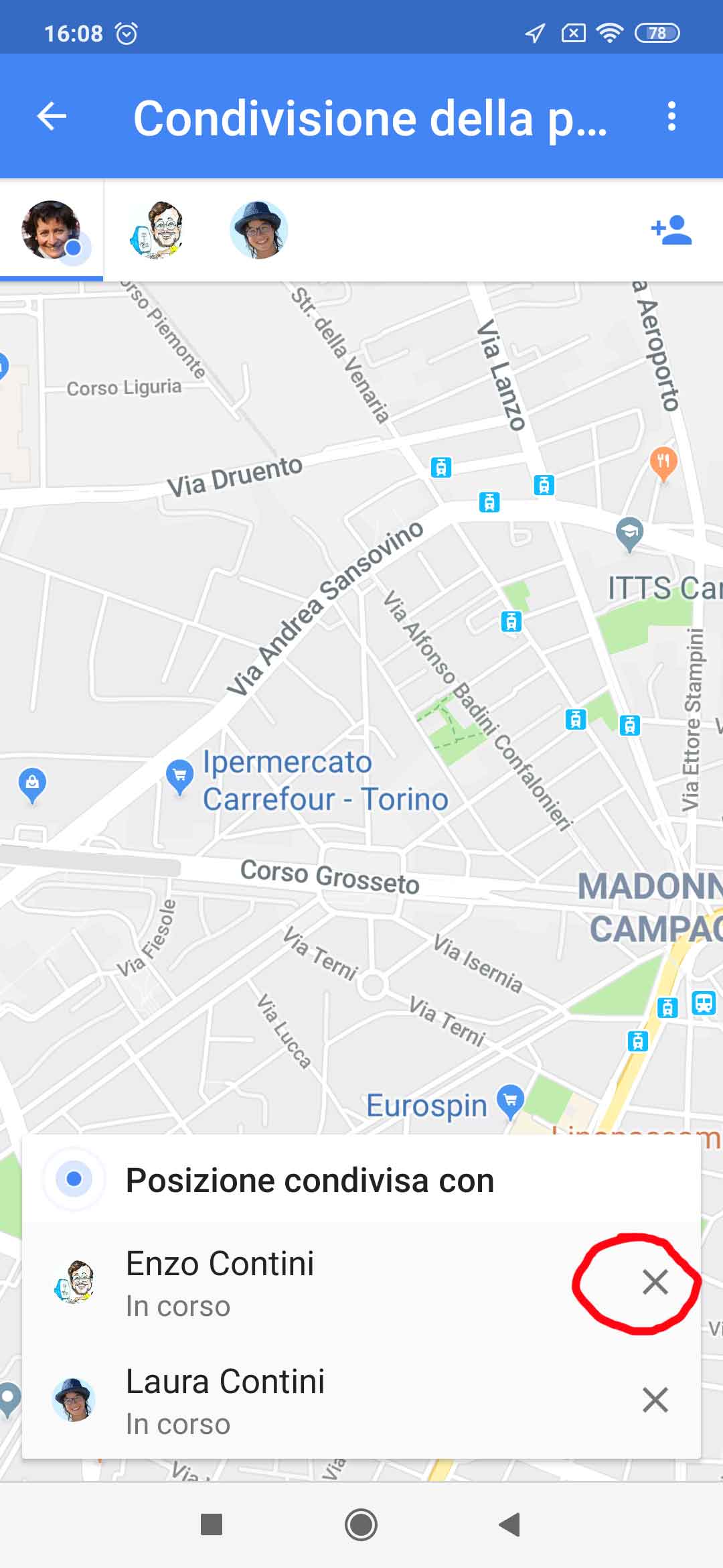 Whenever you want to stop the sharing of your position with someone, even before what you set before, you can do it from the same page simply clicking on the associate “X“: