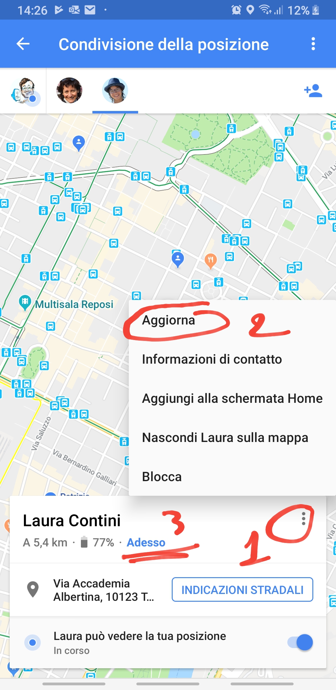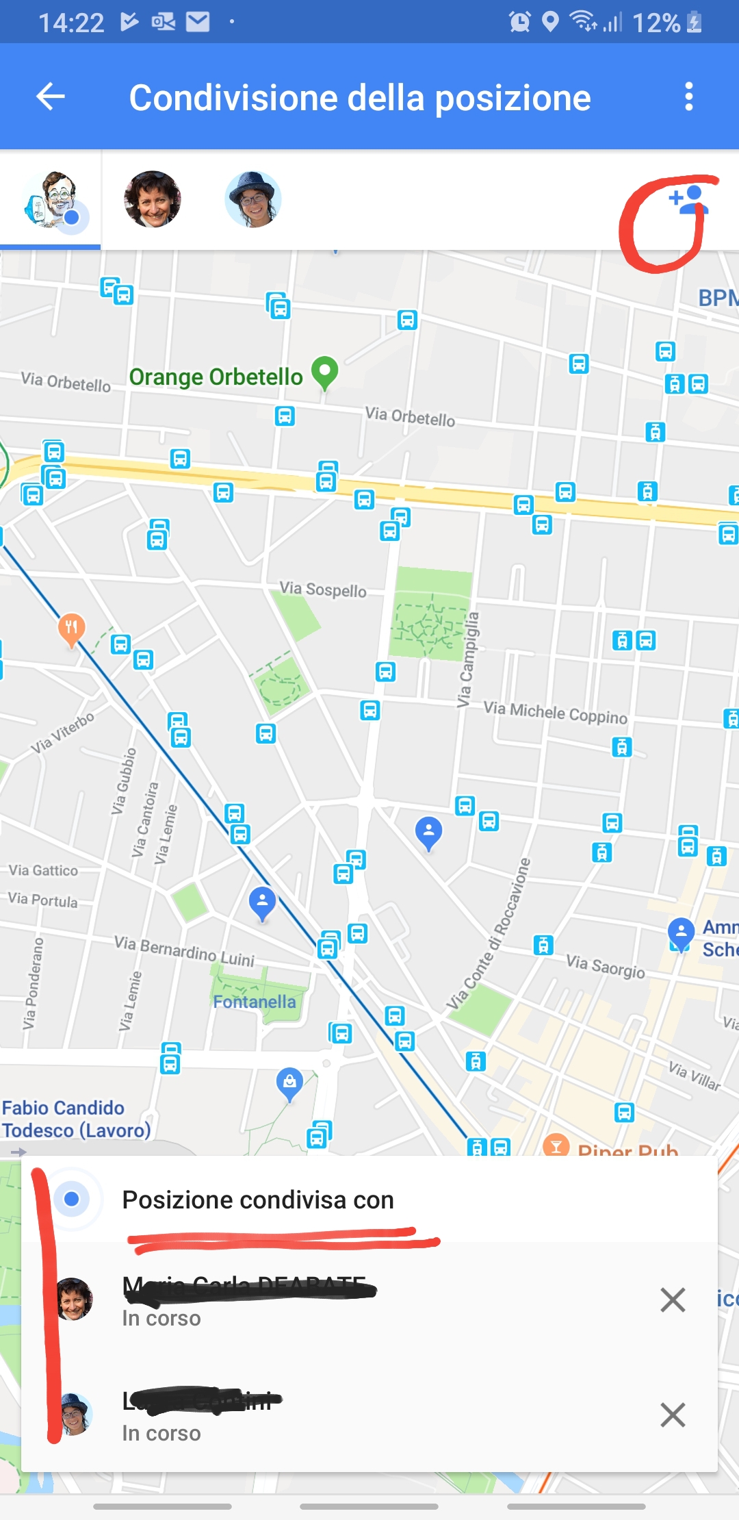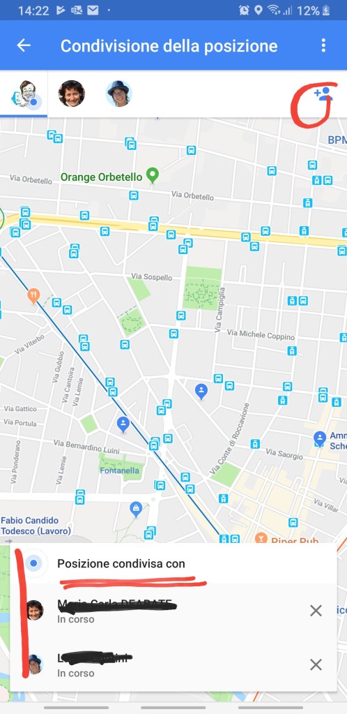 Especially in the case of family members sharing, it could be useful to add a shortcut in the home page for each one: so clicking on each shortcut, a map is soon displayed with the proper pushpin. In the menu associated with each sharing contact, there is the item Add to Home screen [IT: Aggiungi a schermata Home] that allows to create that shortcut on the Home screen of your phone.
